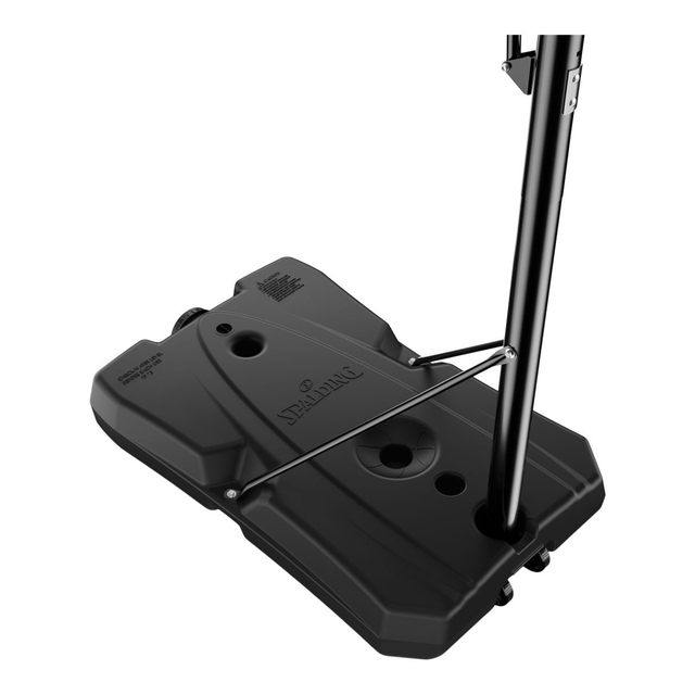Stability base fills with 31 gallons of water, two wheels for portability