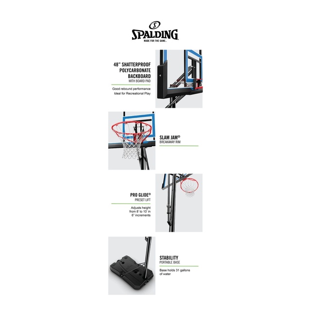 Spalding 48" Shatter-proof Polycarbonate Pro Glide® Portable Basketball System