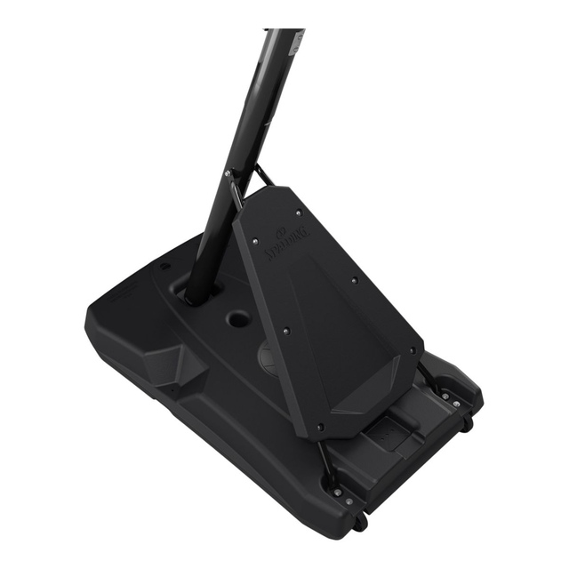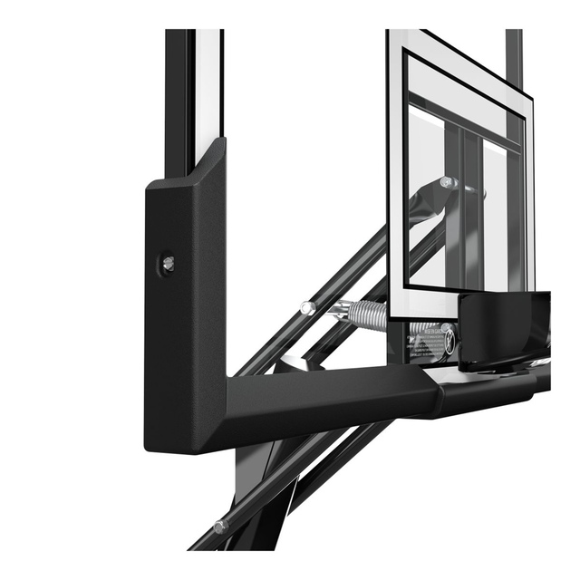 Spalding Hercules Acrylic Portable Basketball System features a front cover rebounder during play and two wheels for portability