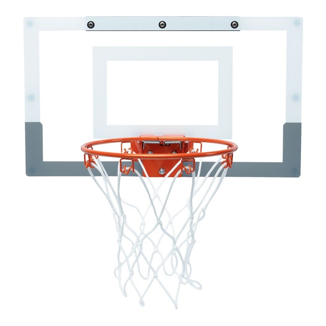 Bring the game indoors with the Spalding Over-The-Door Hoop. Featuring a clear, shatter-resistant backboard, this mini hoop is built to handle powerful dunks and layups. It easily mounts over most doors, transforming any room into a basketball court. With a durable 9" steel break-away rim, it withstands tough shots without breaking or bending. Perfect for kids and adults, this hoop is a fun gift for family and friends.