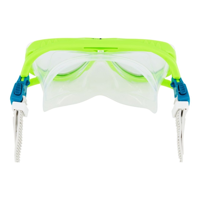 Speedo's updated version of their most popular selling junior sized recreational mask/snorkel set is even more comfortable than before! The 100% silicone skirt is super soft and fits like a glove on your face. The Speed Fit strap allows for super easy and quick adjustment, while the polycarbonate lens with Anti Fog Max coating is lightweight and allows for clear underwater viewing. The snorkel features a splash resistant top so that water won't come in through the top. This two piece set is ideal for snorkeling and recreational swimming, at a great price value!