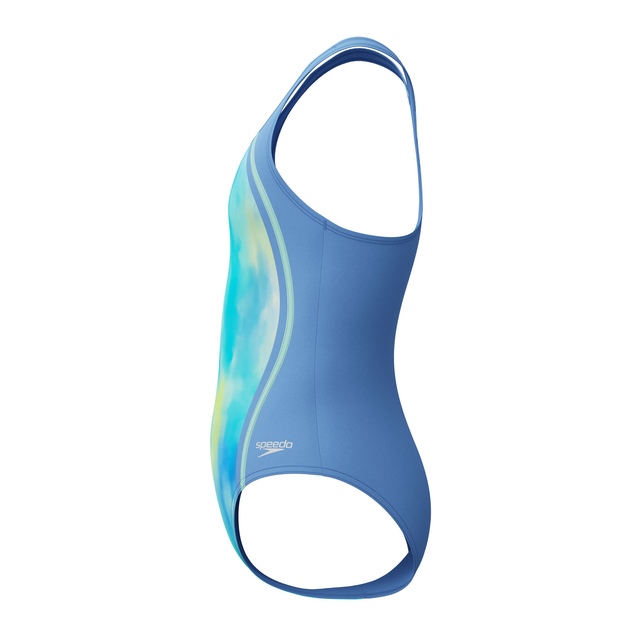 The Speedo Girls' Sport Splice One Piece Swimsuit offers stylish fun in the sun with eco-conscious construction.