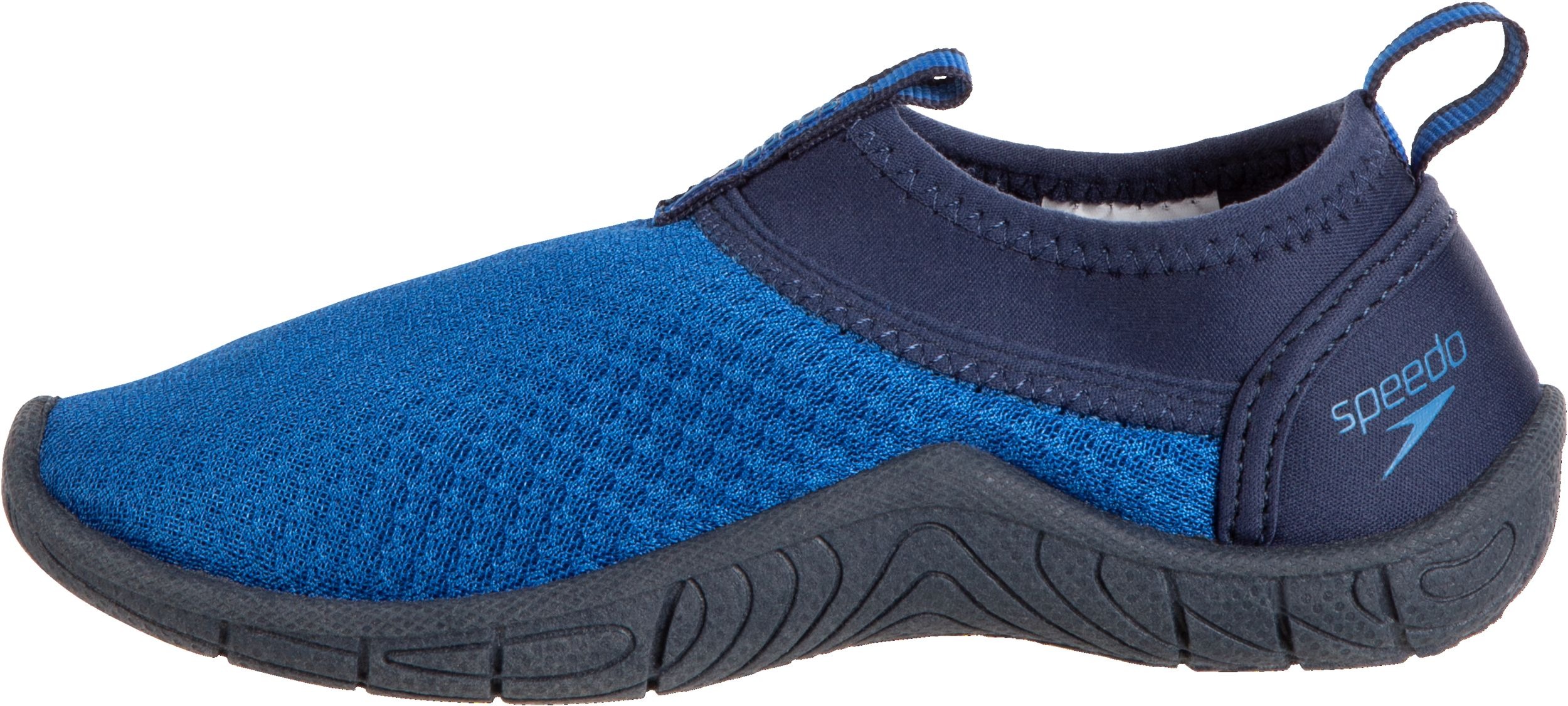 The Speedo Kids' Pre-School/Grade School Tidal Cruiser Water Shoes offer a protective closed toe design for young water explorers. These kids water shoes feature a ventilated mesh upper that promotes airflow to keep feet cool and allows the shoes to dry quickly after water play. The slip-on style makes them easy for little ones to put on and take off independently.