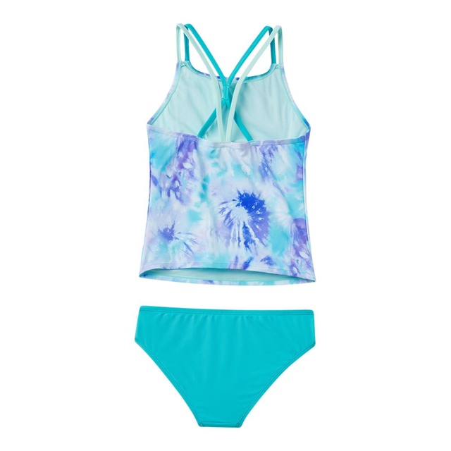 Keep your little one in style in the Speedo Kids' Printed Two Piece Tankini Set. With its high neckline and back strap design, this printed tankini set is functional and comfortable. It’s made from chlorine- and pill-resistant fabric with Block the Burn UPF 50+ sun protection to keep them safe in and out of the pool.