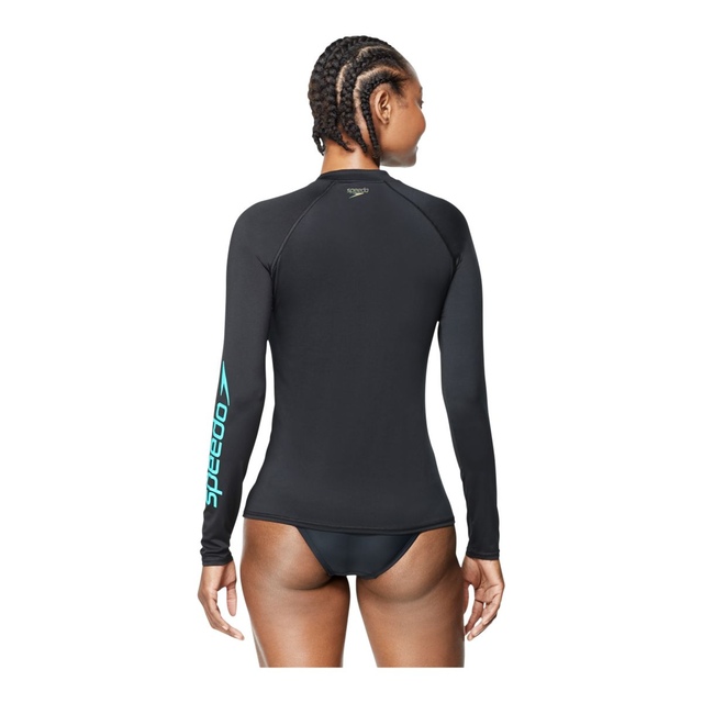 Give your swimsuit a break and reach for this sporty rashguard. It features a quarter-zip neckline and a logo graphic at one of the long sleeves. Made from pill-resistant fabric with UPF 50+ sun protection, this top is a year-round essential.