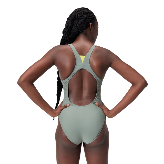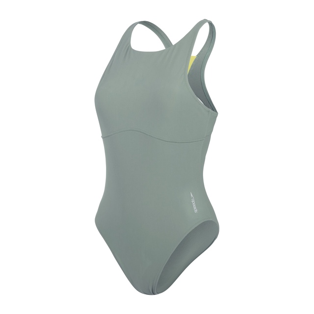 The Speedo Women's Mesh Solid High Neck One Piece Swimsuit offers full coverage and a sun-smart design. Made with ultra chlorine-resistant XLANCE fabric, this swimsuit retains its performance fit for long-lasting wear. The high neckline and UPF 50+ sun protection keep you covered, while removable cups provide modesty and shaping options. Partially crafted from recycled materials, this one piece swimsuit is an eco-friendly choice.