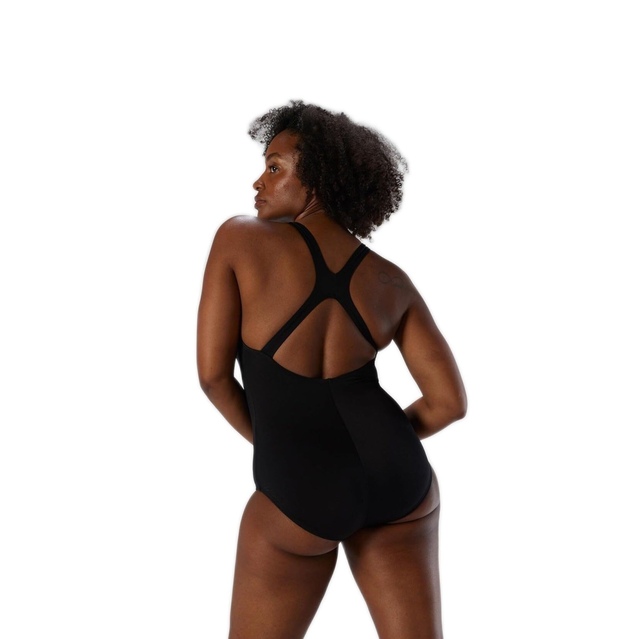 This versatile swimsuit flatters in and out of the water. Its minimalist design features a mesh compression panel at the front and fixed crisscross straps. Made from durable fabric enhanced with Block the Burn UPF 50+, the one-piece style is a safe bet when out in the sun.