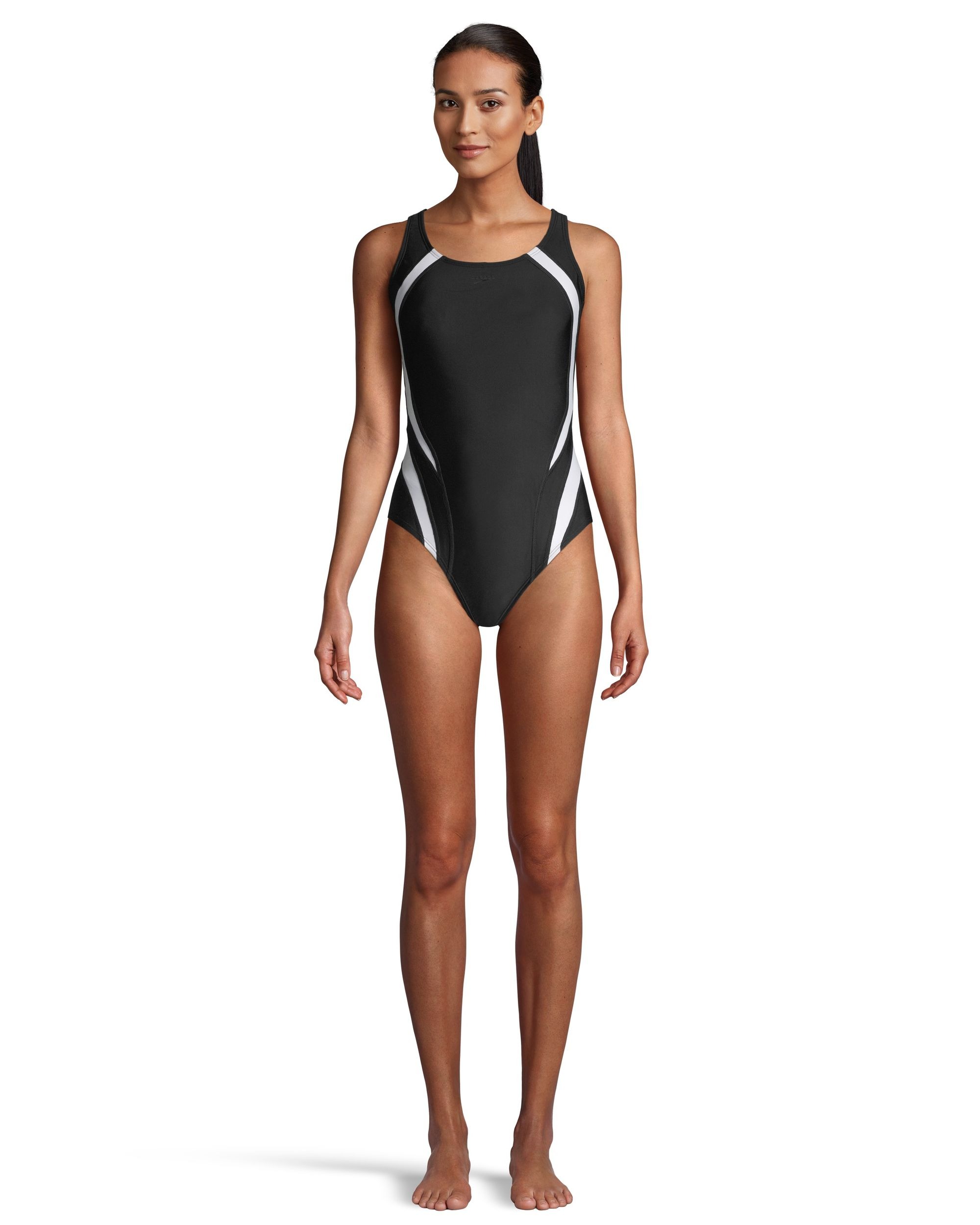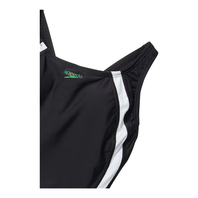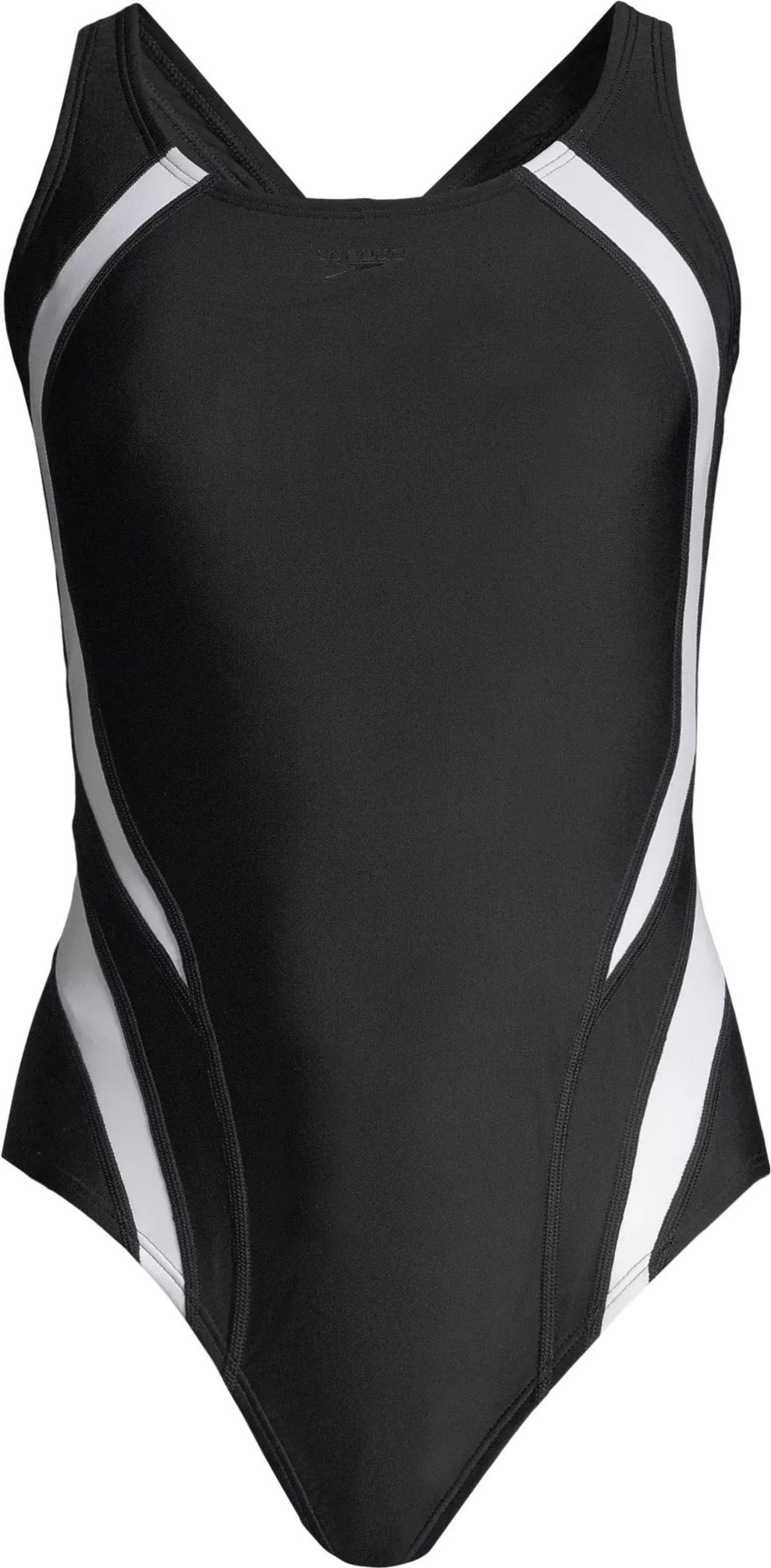 The Speedo Women's Solid Quantum Spice 2.0 One Piece Swimsuit combines functional style with performance features. Its flattering spliced design with a keyhole back cutout stands out poolside.