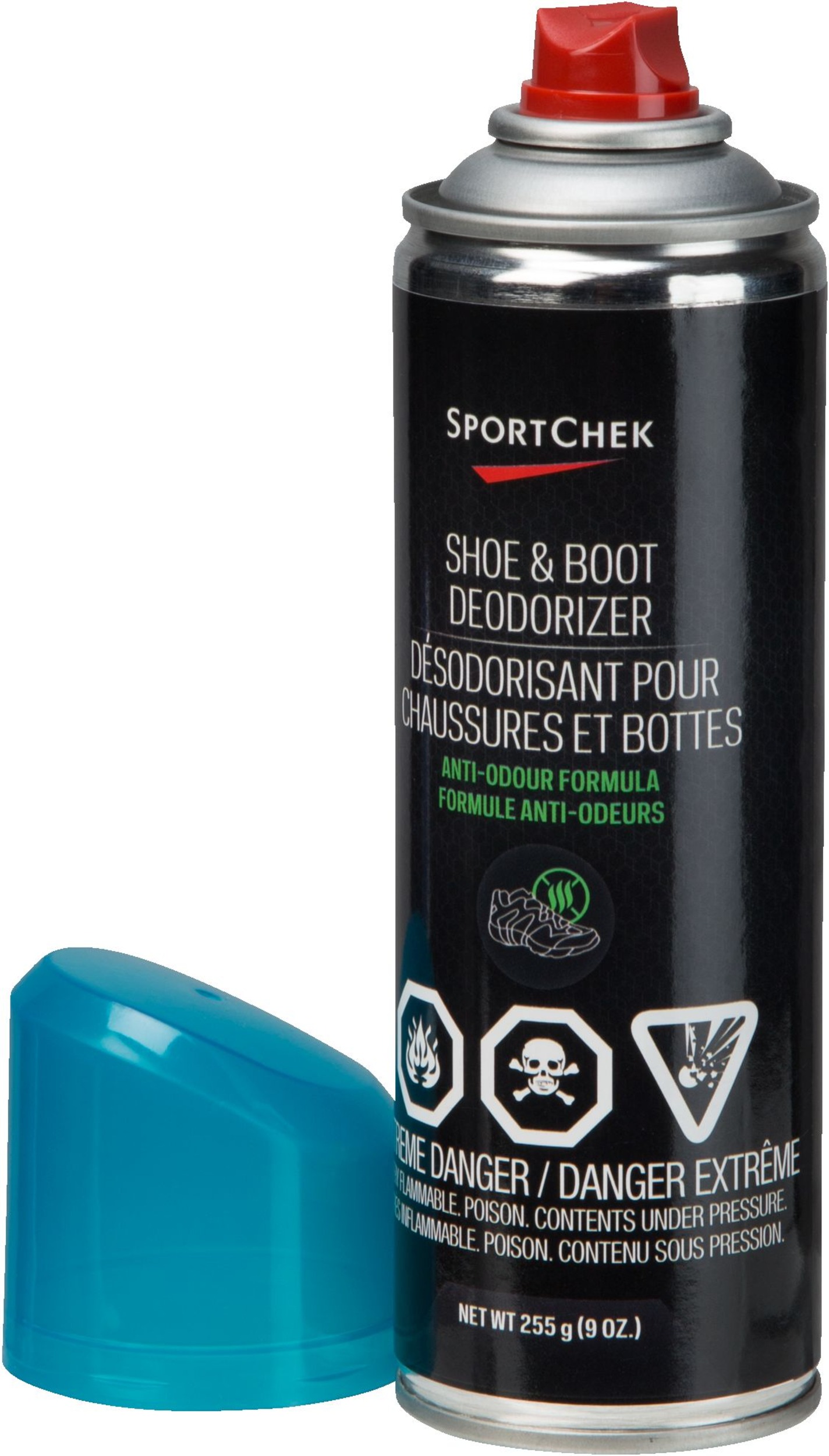 Sport Chek Shoe & Boot Deodorizer Shoe Spray ensures your athleisure kicks will never smell foul. This fast-acting deodorizing spray destroys odors at the source in sneakers, athletic footwear, gym bags and the like. Made with materials safe for all shoe types including leather, mesh, canvas and suede, one spritz of this odour eliminator is all you need to keep your footwear fresh from the gym to the streets.