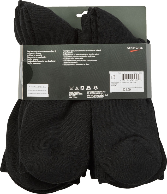 SportChek Men's All Sport Crew Socks provide ultimate comfort with smooth toe seams, rib-knit arch support and cushioned soles. These breathable socks come in a pack of 10 pairs to restock your sock drawer quickly.