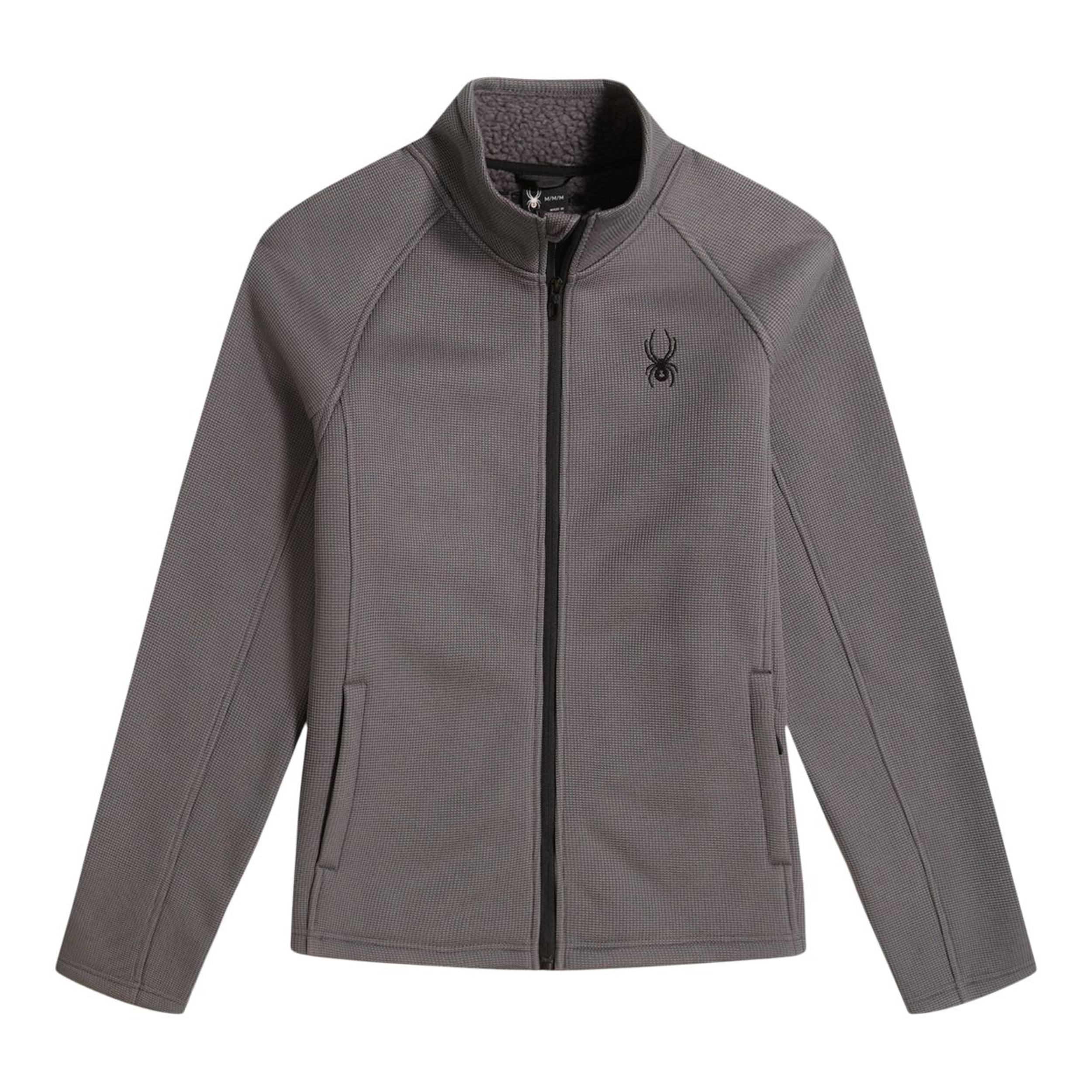 The Spyder Men's Stellar Full Zip Jacket offers warmth and style in the outdoors. Made from bonded fleece with a grid knit texture and cozy Sherpa lining, it's an ultra-comfortable layer on cooler days. This Spyder jacket also features an embroidered logo for style, two side zipper pockets for small item storage and a secure full-zip closure.