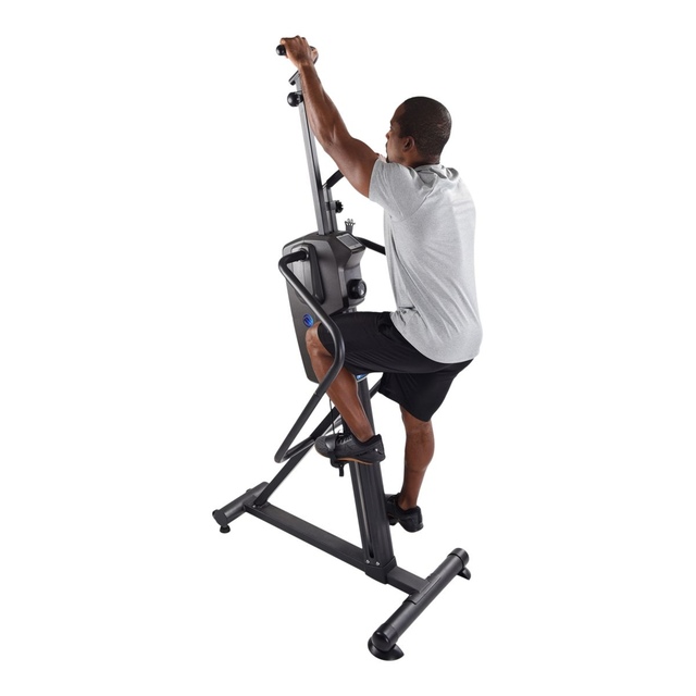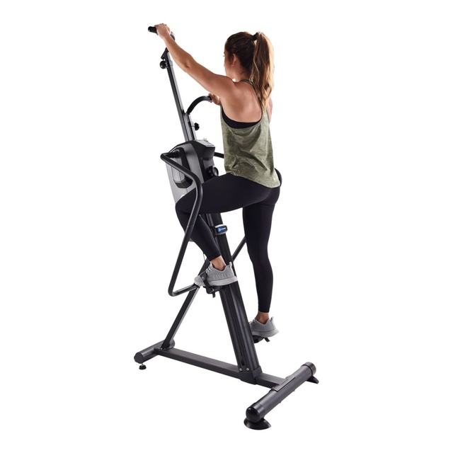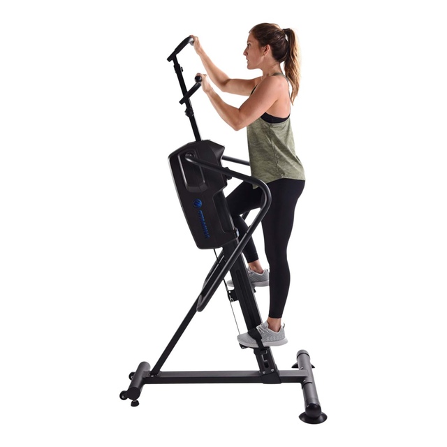 Climbing has been recognized as a fantastic total-body workout, helping to tone muscle, improve heart health and burn excess fat. The Stamina Cardio Climber provides a smooth, quiet and low-impact cardiovascular exercise that engages every major muscle group. The Stamina Cardio Climber is designed to remain gentle on the joints while still providing a great workout for both the upper and lower body. Two different workout configurations ensure a wealth of fitness potential. Use the wide horizontal handlebars for a traditional stepper workout, or for extra stability on a lower-body workout. Switch to the height-adjustable vertical handlebars for a low-impact climbing exercise. On the rear of the climber, you’ll find built-in wheels for no-sweat storage. The compact design takes up less space than a traditional treadmill or elliptical. Bring the tremendous benefits of climbing into the comfort of your own home with the low-impact Stamina Cardio Climber. Keep track of your workout progress with the easy-to-operate LCD monitor and view speed, time, distance, count and calories. Use the SCAN mode to monitor each of these metrics in real-time. Take the intensity up a notch with a turn of the resistance dial. The eight levels of smooth magnetic resistance provide a challenge for fitness users of all experience levels. Slide your smartphone into the included holder for easy access during workouts. The stout, stable steel frame on the Cardio Climber is outfitted with several elements that promote safety and stability. The broad horizontal handlebars are ergonomically-designed to allow for multiple grip options. The vertically-oriented handlebars are height-adjustable, making the Cardio Climber a great fit for all heights. Lastly, the textured pedals include straps to keep your feet secure.