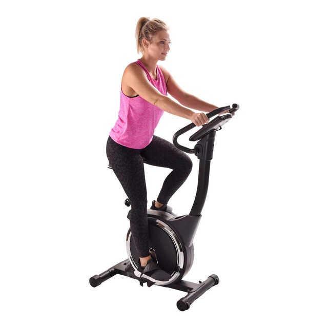 Cycling is widely recommended by medical professionals because it helps you burn calories, improve heart health and tone the lower body, all in a joint-friendly way. This makes it a great form of cardio for users of nearly all fitness levels. The Stamina Magnetic Exercise Bike 345 combines the plentiful benefits of cycling with the convenience and accessibility of an in-home workout. A dual focus on both performance and comfort helps you build the body you desire. Keep track of your stats on the easy-to-operate LCD monitor, including speed, time, distance, RPM (rotations per minute), watts, and pulse. Program custom workouts with the monitor, including intervals, metric-focused routines and body-fat percentage trackers. Use the monitor to set the smooth, magnetic resistance to your desired intensity level. The Stamina Magnetic Exercise Bike 345 is engineered for comfort, allowing you to focus more on achieving your fitness goals. It is outfitted with a molded padded, height-adjustable seat that is both height and distance-adjustable, textured pedals with adjustable straps, and padded, rotating handlebars with integrated heart rate sensors. A drink holder and device tray are also included, allowing you to keep your drink and smartphone / tablet nearby while pedaling. This product also includes free access to müüv, the smart audio coaching app. müüv helps you move 500+ minutes per month with the right mix of cardio, strength, and flexibility for a healthy and sustainable lifestyle. You'll get smart audio coaching that is personalized to you, progresses for you, and is fun to do. The all-in-one app comes with a follow-along assembly video, personalized workouts tailored to the equipment you own, and an ad-free music listening experience from iHeartRadio. Download the müüv app on the Apple App Store or the Google Play store. The Stamina Magnetic Exercise Bike 345 combines performance and comfort for a potent cardiovascular workout in the comfort of home.
