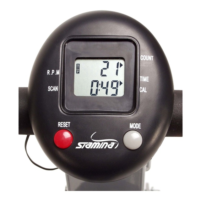 • Battery-operated electronic monitor tracks number of steps per minute, number of steps during the workout, workout time, and calories burned