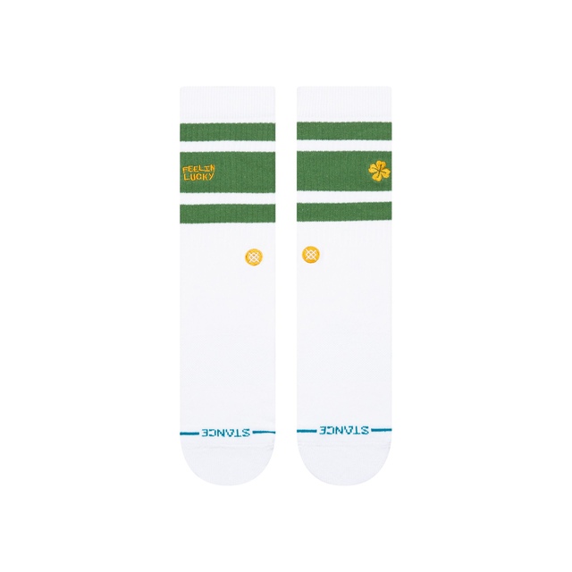 The Stance Men's Feelin Lucky Crew Socks feature fan-favorite crew height patterns designed for exceptional comfort. These cushioned men's socks boast a seamless toe cap for smooth feel, targeted cushioning for impact protection, and a stay-put fit to prevent slipping and bunching - ensuring extra comfort with every step.