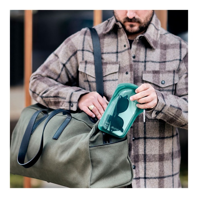 Made from 100% pure platinum food-grade silicone, the Stasher Go Bag is a sustainable alternative to plastic. This airtight, leakproof bag features an easy-clip recycled aluminum carabiner, perfectly sized for essentials like your phone and hand sanitizer. BPA and BPS free, the Stasher bag is a safe and versatile storage pack for every adventure.