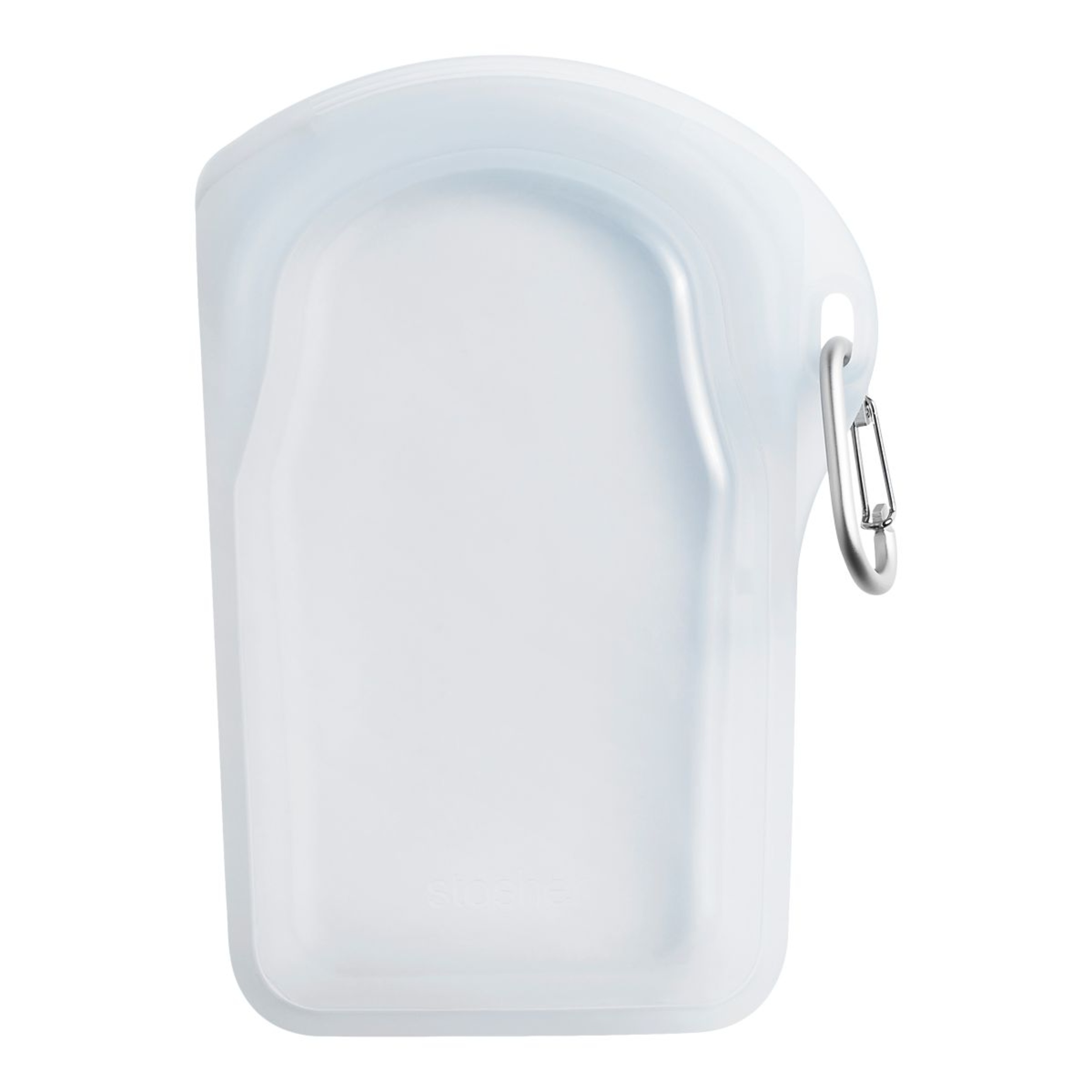 The Stasher Go Bag features an innovative Pinch Press seal that preserves freshness with an airtight, leakproof closure. It's made from durable, pure platinum food-grade silicone, free from BPA and BPS. This bag features an easy-clip recycled aluminum carabiner so you can attach it to your backpack or carry bag. The Stasher Go Bag is ideal for securely carrying essentials when you're travelling.