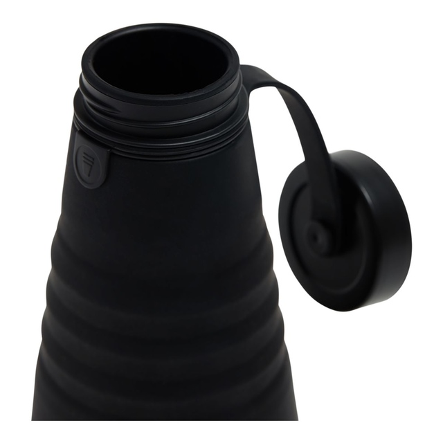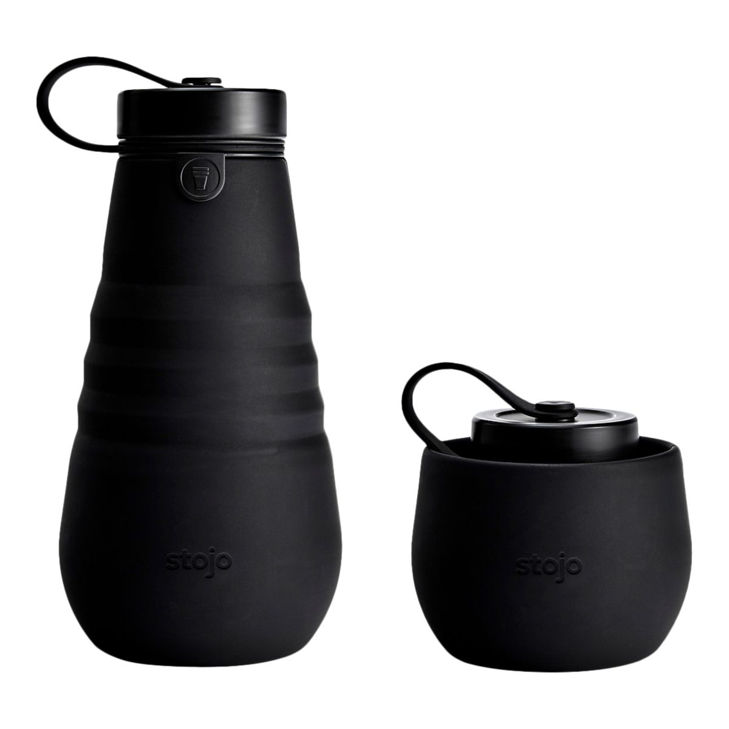 The Stojo 20 oz Water Bottle is a collapsible bottle made from food-grade silicone and recycled materials for on-the-go use. It collapses from 18cm to 8cm for portability. The leakproof screw-on cap has a loop for attaching to bags. BPA, phthalate, and lead-free, this Stojo water bottle is microwave and dishwasher-safe and suitable for hot and cold beverages.
