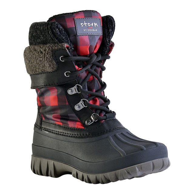The Storm by Cougar Women's Creek Lace Up Winter Boots offers warmth and durability for cold weather. Thermolite insulation keeps feet cozy in temperatures as low as -24°C/-11°F. A faux Sherpa collar and knit cuff add warmth and style, while the waterproof exterior ensures dry feet. With secure traction on slippery surfaces, these mid-calf boots are perfect for winter adventures or daily wear.