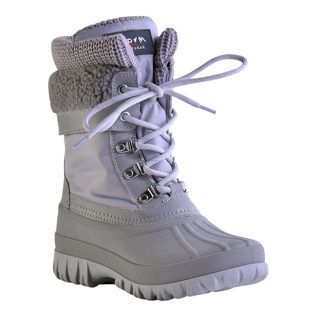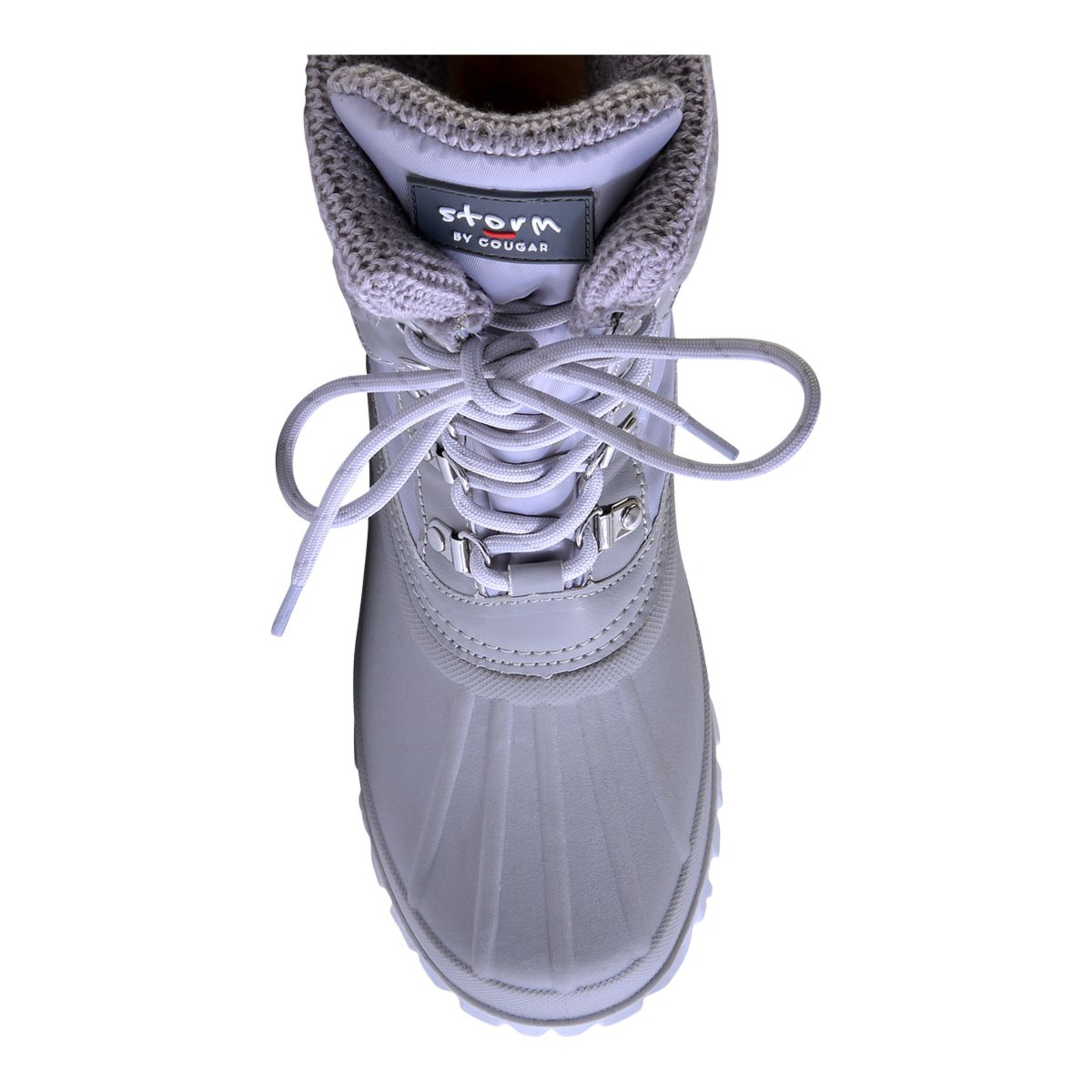 The Storm by Cougar Women's Creek Lace Up Winter Boots offers warmth and durability for cold weather. Thermolite insulation keeps feet cozy in temperatures as low as -24°C/-11°F. A faux Sherpa collar and knit cuff add warmth and style, while the waterproof exterior ensures dry feet. With secure traction on slippery surfaces, these mid-calf boots are perfect for winter adventures or daily wear.