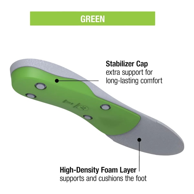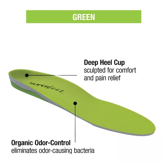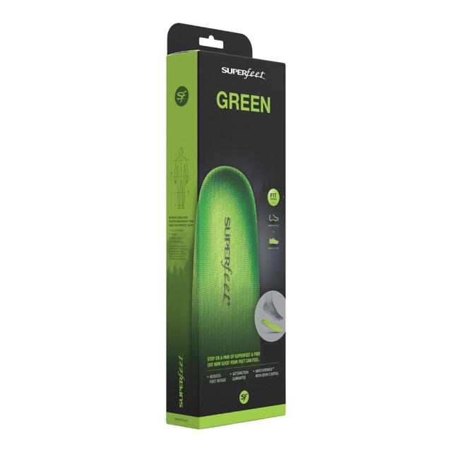 Superfeet High Profile Green Insoles feature high-density foam, deep heel cups and a high arch shape for optimal support. They include an organic odour-control coating and durable construction, ensuring stability and freshness for up to 500 miles or 12 months. These Superfeet insoles are designed to reduce stress on feet, ankles, knees and back.