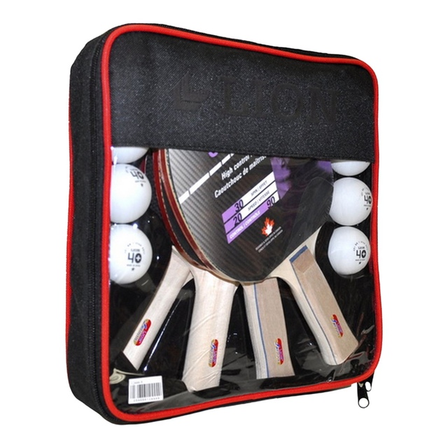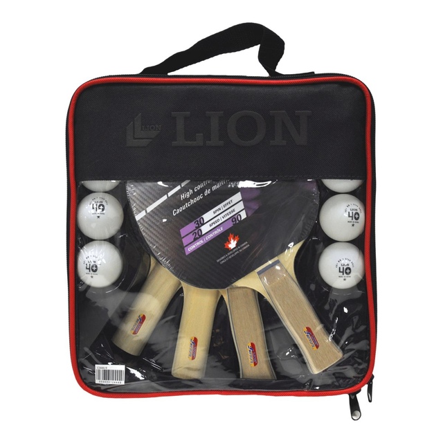 Includes four rackets and eight Lion® 40+ 1-star grade white table tennis/ping pong balls