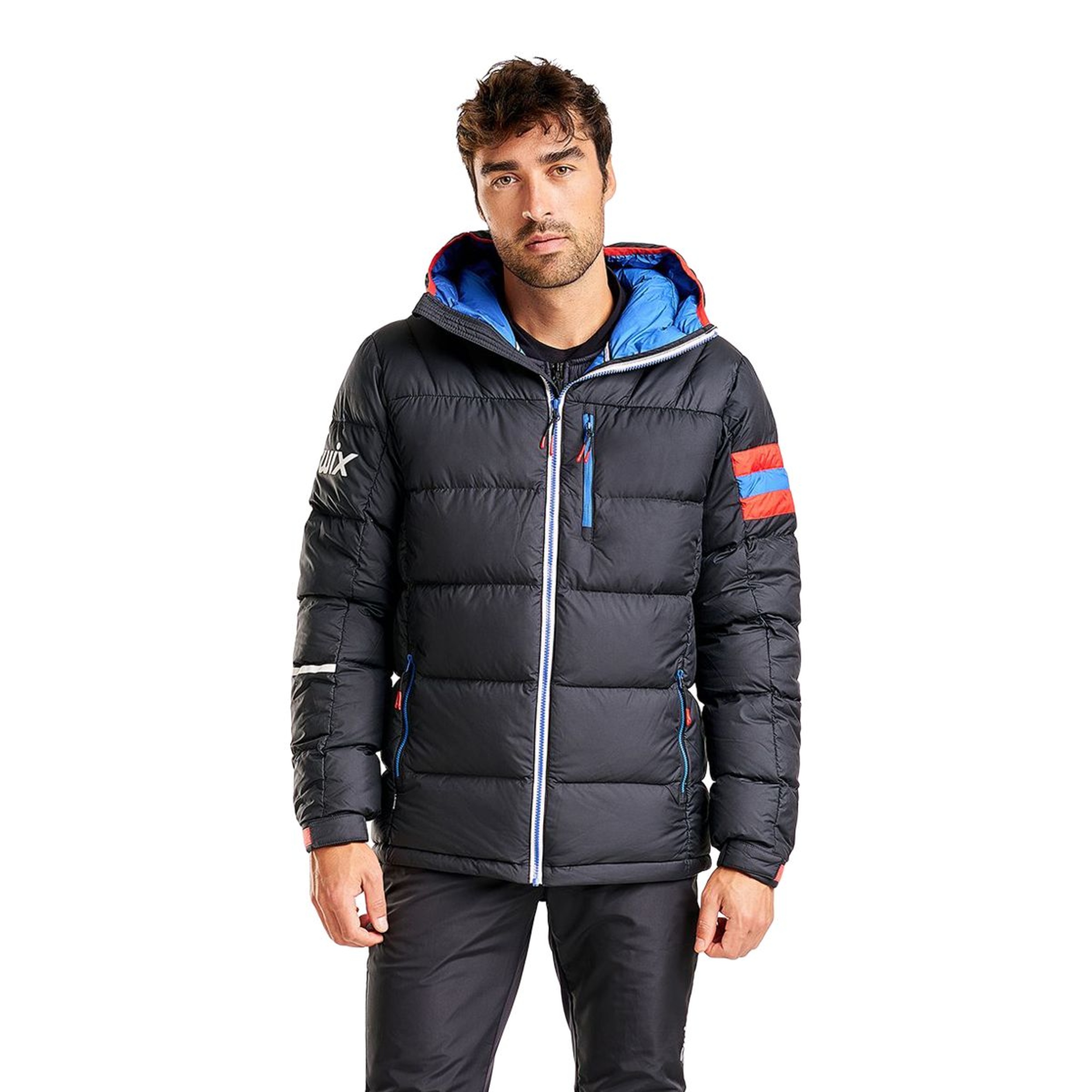 Men's down jacket with water-resistant treated outer fabric that is perfect for windy and wet conditions. Our new Club down jacket will keep your body’s temperature comfortable while you coach or will quickly warm you up after a race.