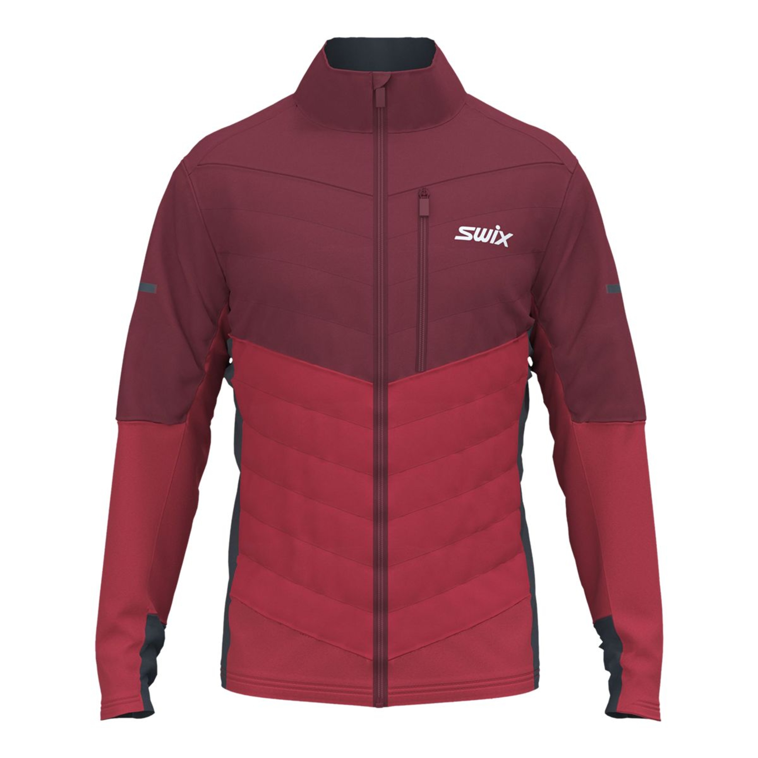 The Swix Dynamic Hybrid jacket is a high-intensity cross-country skiing jacket designed with a body-mapped construction that keeps you dry and warm on colder days. Why is this jacket called hybrid? Because its PrimaLoft thermally insulation is strategically placed on front, shoulders, top of the sleeves and collar while lighter panels fill the back for breathability. Moreover, this jacket presents a plethora of features such as recycled fabric on the front and back outer fabric, reflective details, an adjustable drawstring at the bottom hem body, one zippered pocket on the chest and 2 at the hands. With its fun stitching line patterns and nice colour tones, the Dynamic will bring dynamism to your outing!