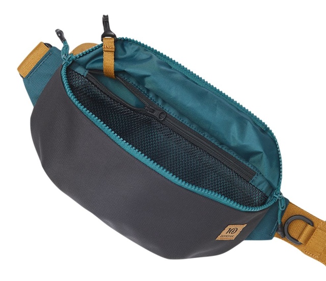 Interior zipped mesh pocket and hidden back pocket provide secure storage for valuables