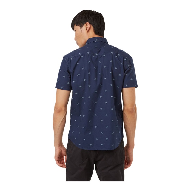 The tentree Men's Bike Around T Shirt celebrates an eco-friendly lifestyle. Featuring a bicycle print design, this shirt is made from organic cotton to minimize waste, reduce CO2 emissions, and eliminate harsh chemicals. This relaxed-fit tentree t shirt with a collared neckline offers comfort, and the chest pocket with a divided section provides storage for essentials like sunglasses.