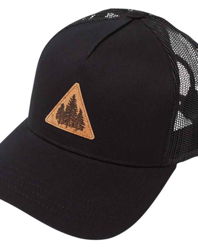 The Tentree Men's Pine Trio Altitude Hat is designed with a breathable organic cotton twill snapback. It has a mesh trucker back for ventilation and a curved brim from recycled plastic for protection. The unique cork patch adds a natural touch to this trucker hat.