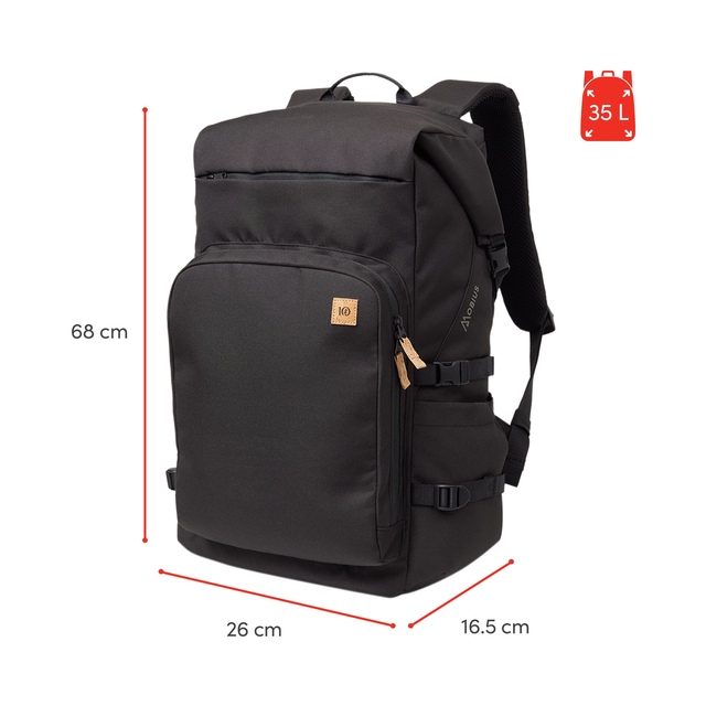 The Tentree Mobius 35L Backpack is made from responsibly sourced materials. It features a dual access zippered and roll-top closure, a padded sleeve for a 15-inch laptop, and adjustable safety whistle straps. This water-resistant backpack provides organization and protection for your daily essentials.