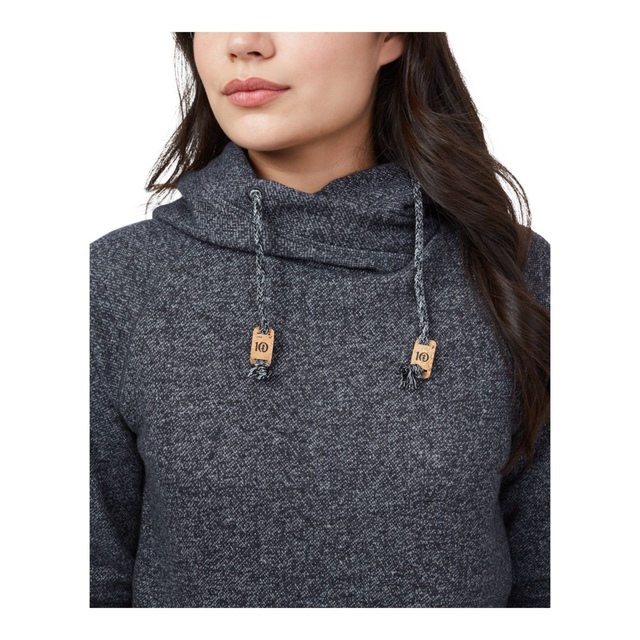 The crossover design of this tentree Women's Burney Multisport Hoodie offers extra warmth around the neck. This marled fleece pullover features long raglan sleeves, a unique kangaroo/welt pocket combo, and rib-knit cuffs and hem. The hood on this Tentree hoodie is jersey-lined for extra soft protection and the drawcord is enhanced with decorative pulls.