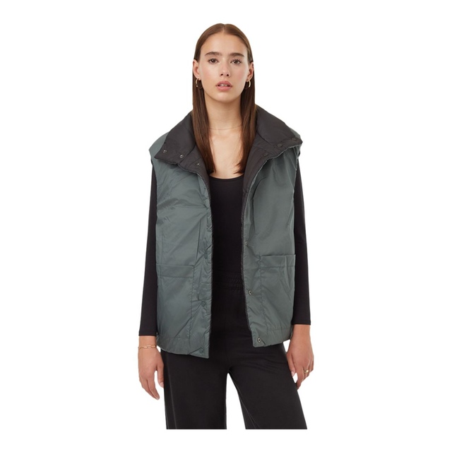 The Tentree Women's Cloud Shell Oversized Vest offers two stylish looks in one. This versatile vest features a reversible design with contrasting colors and patterns on each side.