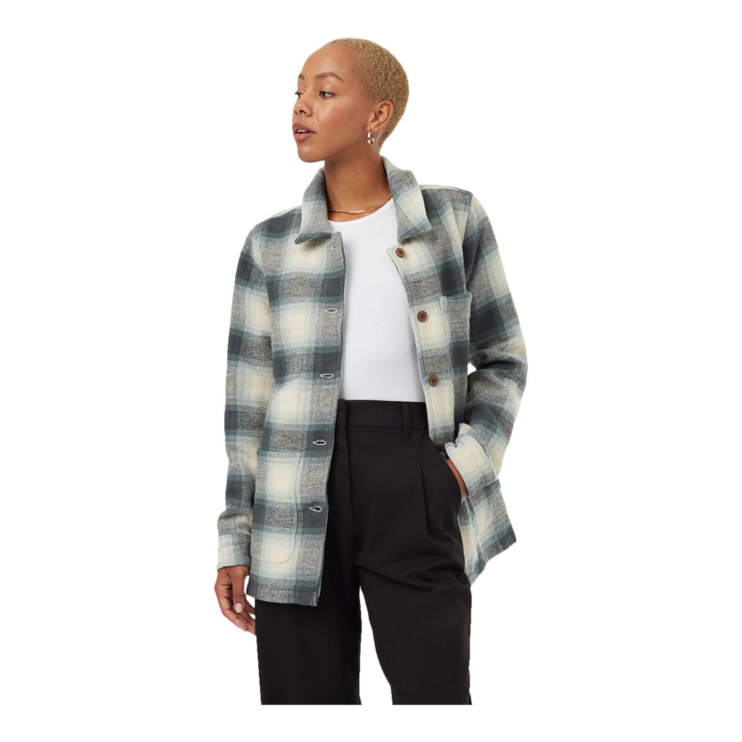 The tentree Women's Flannel Utility Jacket is a comfortable work jacket made from 100% organic cotton that gets softer with each wear. The thick flannel construction and plaid pattern make it warm and cozy. The classic fit and button-front closure give the women's utility jacket an added touch of style.