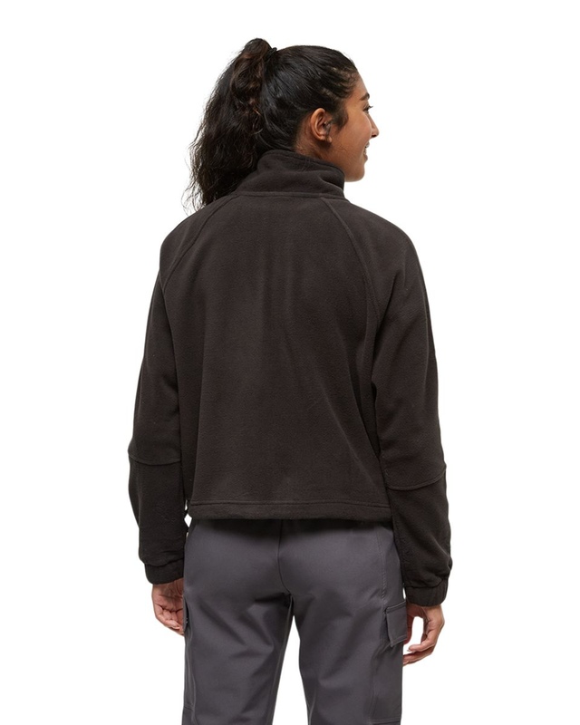 The Tentree Women's Full Zip Long Sleeve Top is a cozy, eco-friendly layering piece made from REPREVE® polyester fabric, repurposed from plastic bottles into soft microfleece. A relaxed mock neck fit and cropped length flatters your shape while raglan sleeves increase mobility. The cinch-able hem helps adjust the fit, and elbow darts and seams enhance natural movement. With 2-way low stretch knit fabric, this sustainable long-sleeve top keeps you warm and comfortable for outdoor adventures.