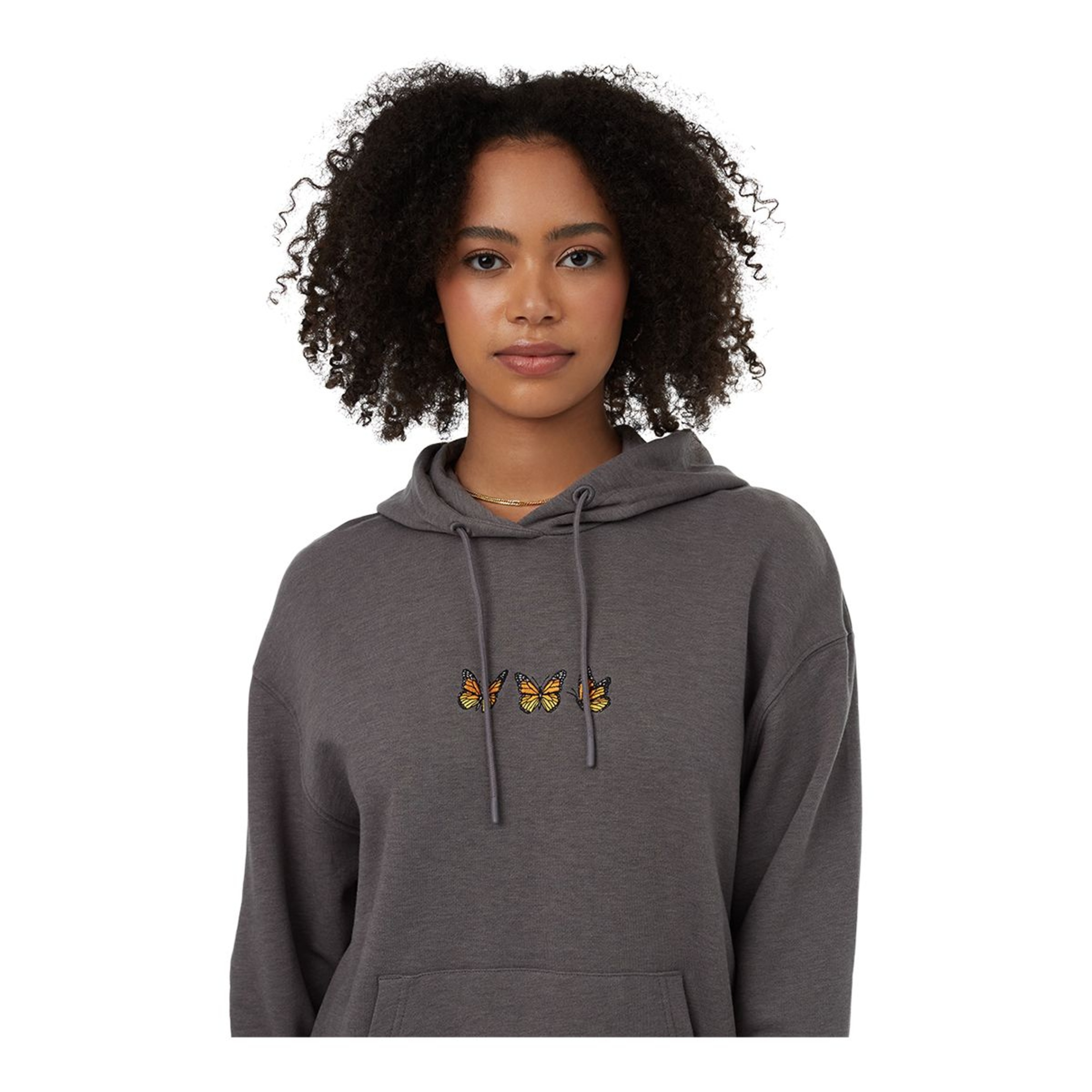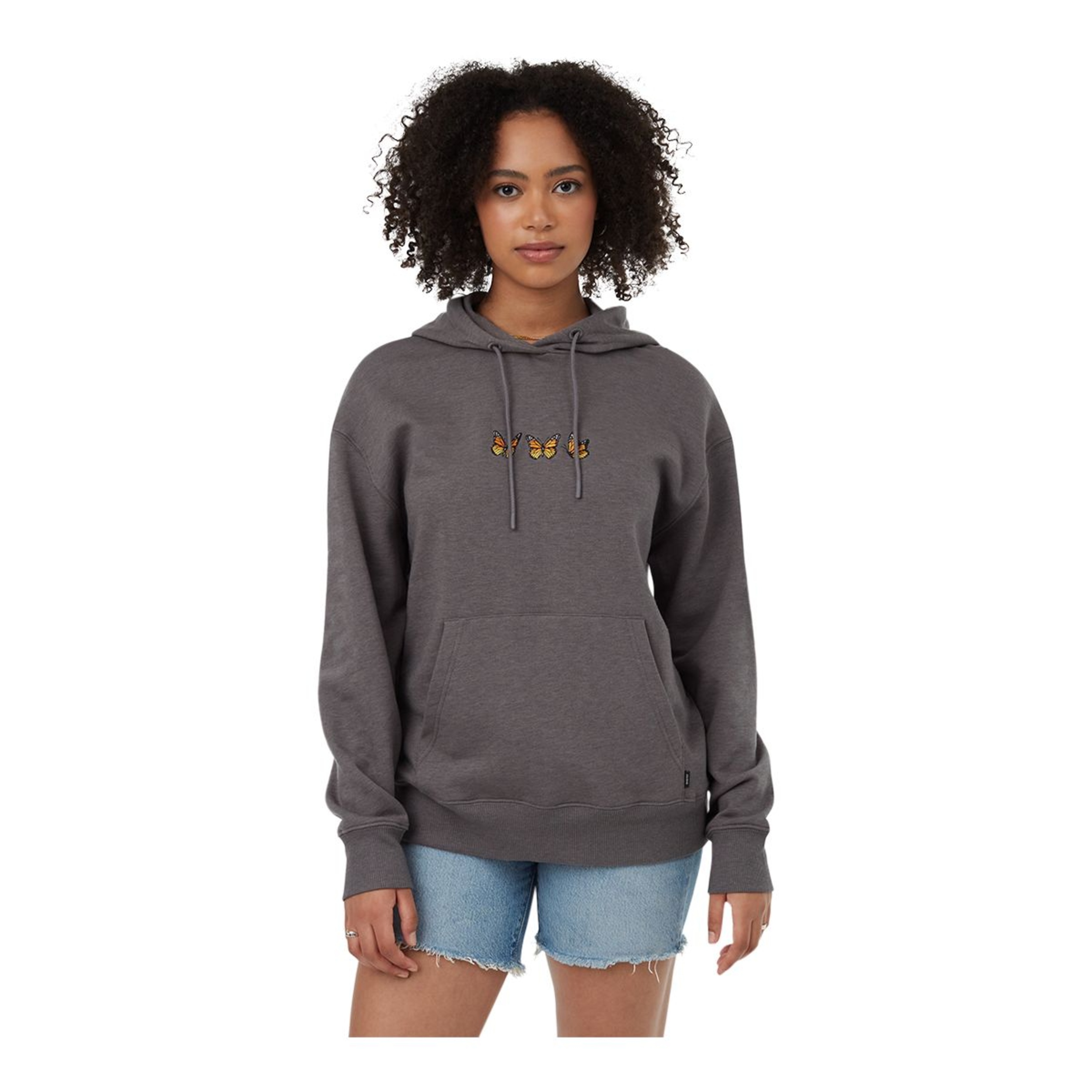 Support the environment and your wardrobe with this tentree Women's Monarch Hoodie. A modern, oversized fit with dropped shoulders and an eye-catching embroidered graphic make this comfy hoodie as fashionable as it is functional. It's made from medium two-way stretch knit fabric for flexible comfort and features a drawcord hood and roomy kangaroo pocket. Each purchase of this tentree hoodie contributes to planting milkweed in support of butterfly habitats.