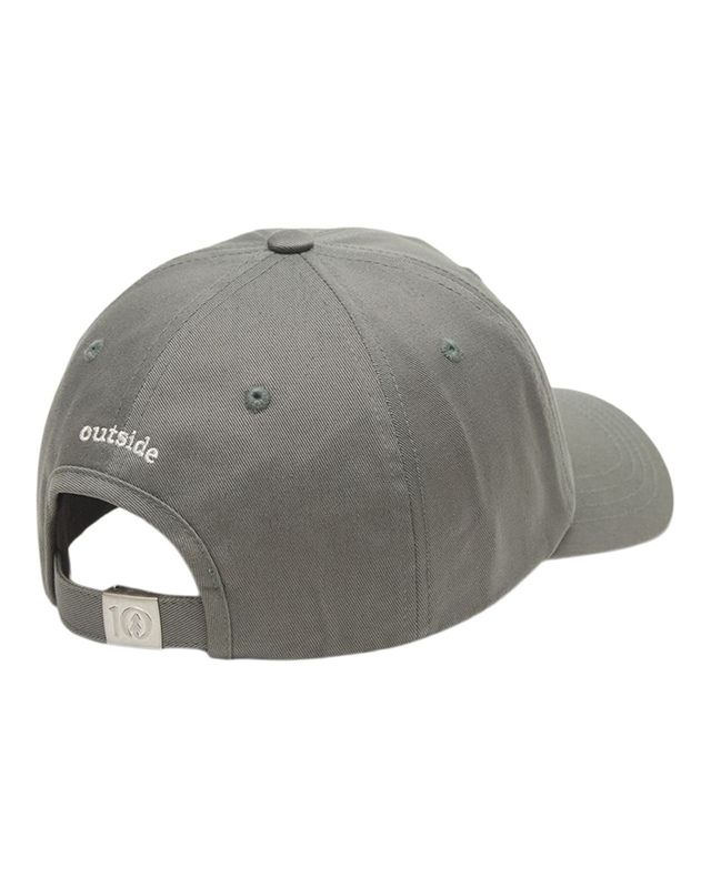 The Tentree Women's Slogan Lost Peak Hat offers a low-profile design made from organic cotton twill. Its curved brim is crafted from recycled plastic, and the metal clasp provides an adjustable fit. The front panel features embroidered artwork, making this hat both sustainable and stylish.