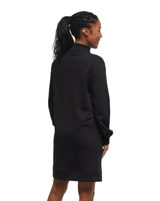 The Tentree Women's TreeFleece Mockneck Sweatshirt Dress embodies cozy, sustainable fashion with its relaxed fit and signature TreeFleece fabric. 2-way stretch knit construction offers both warmth and mobility. The seamless mock neck, blouson sleeves, ribbed cuffs and hem create a flattering look. Its functional hand pockets and hem slits ensure easy movement. Rib knit detailing at the back of this sweatshirt increases stretch, providing all-day comfort in a stylish, eco-friendly design perfect for casual outings or lounging.