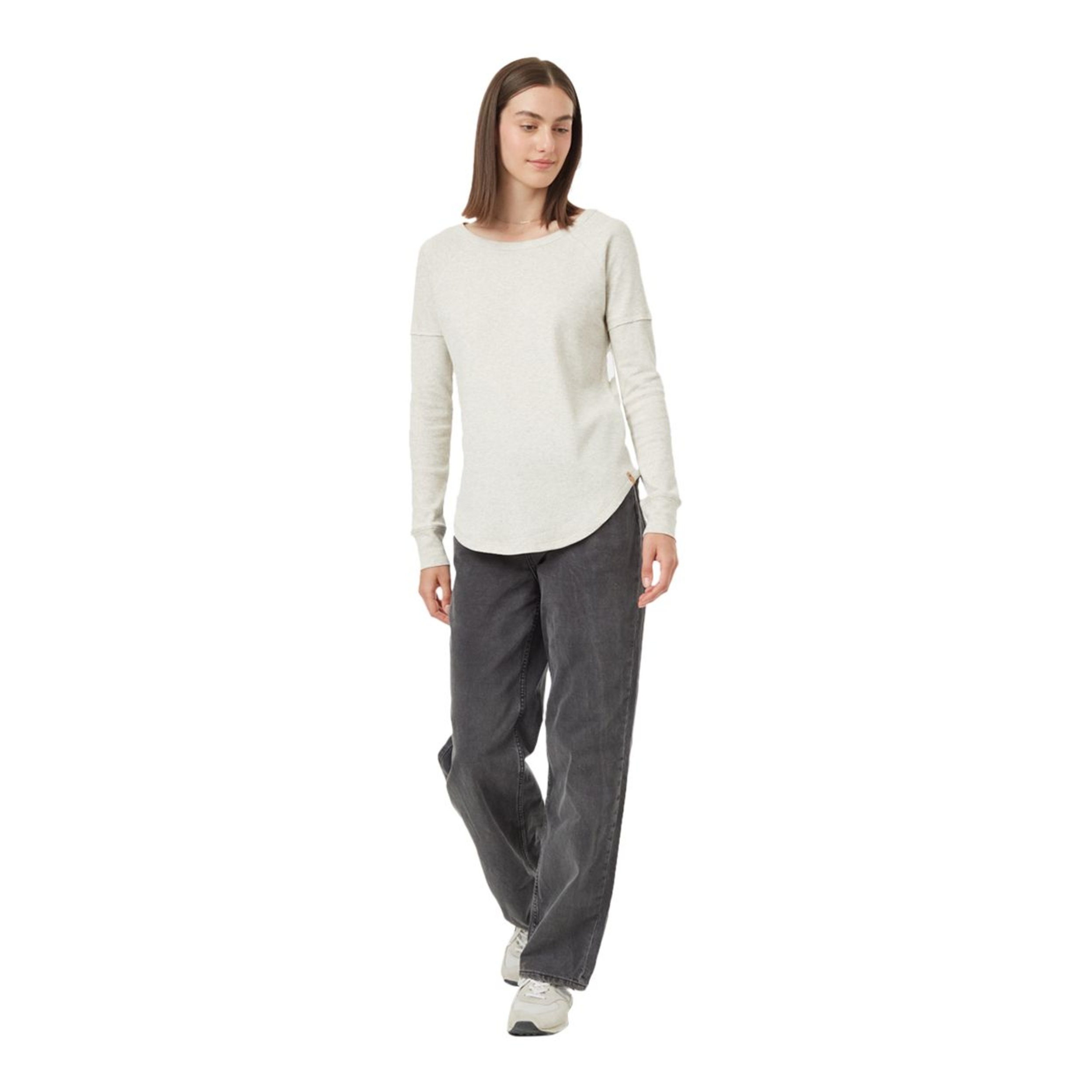 The Tentree Women's Treewaffle Sweatshirt combines style and sustainability in one comfy package. Crafted from organic cotton and TENCEL fibres, this relaxed-fit top features raglan long sleeves with raw edge details, secure rib-knit cuffs and a flattering scoop hem. This versatile Tentree sweatshirt incorporates four-way stretch knit fabric for a flexible fit that won't hold you back.