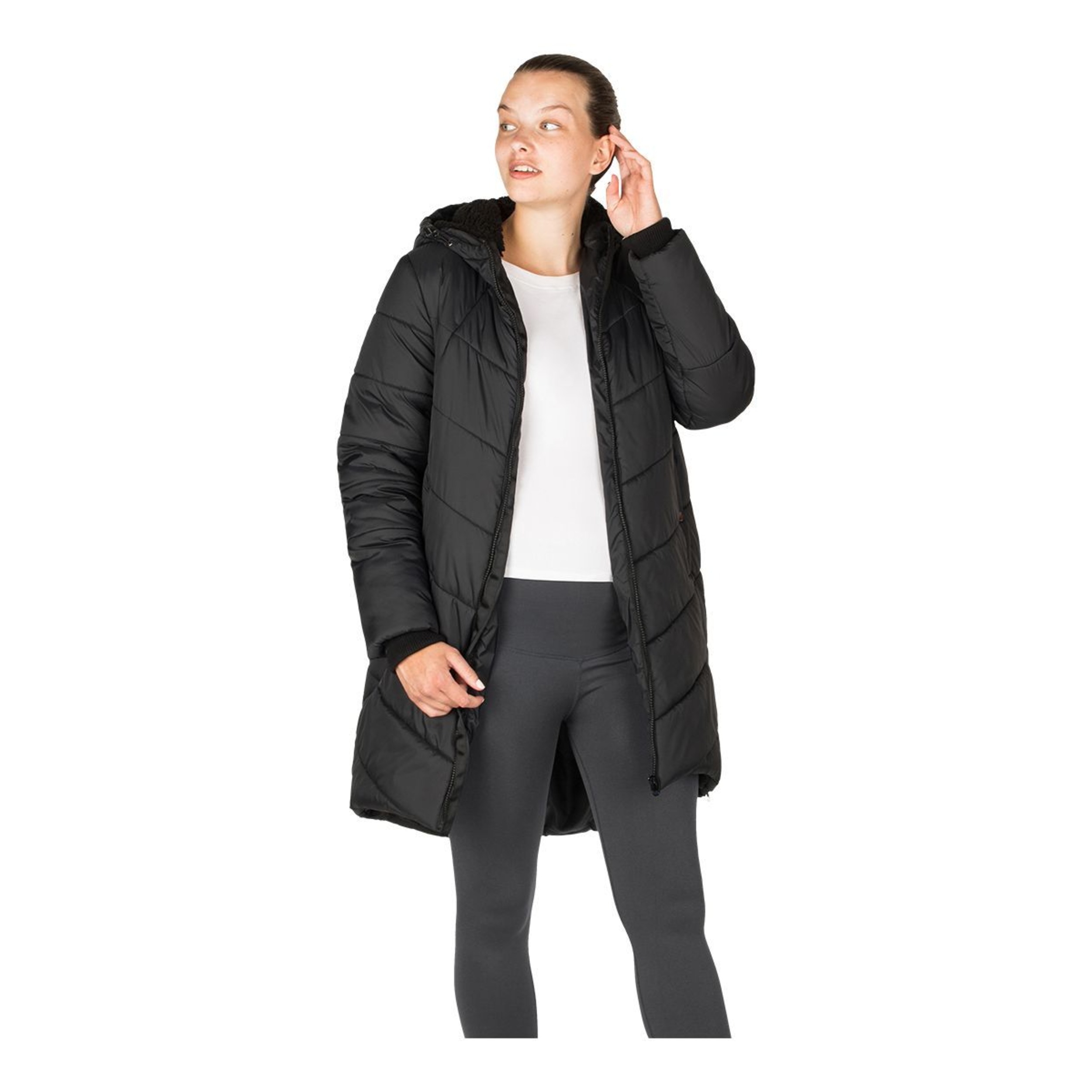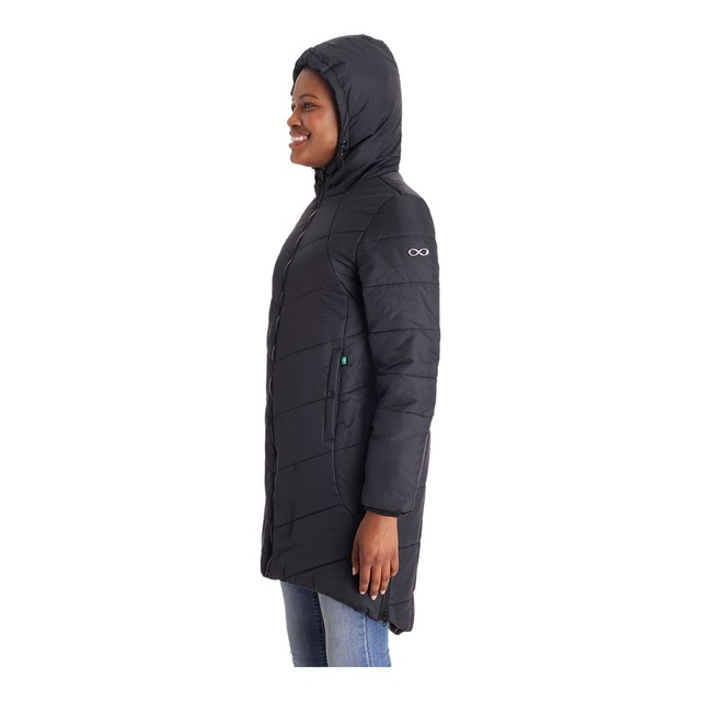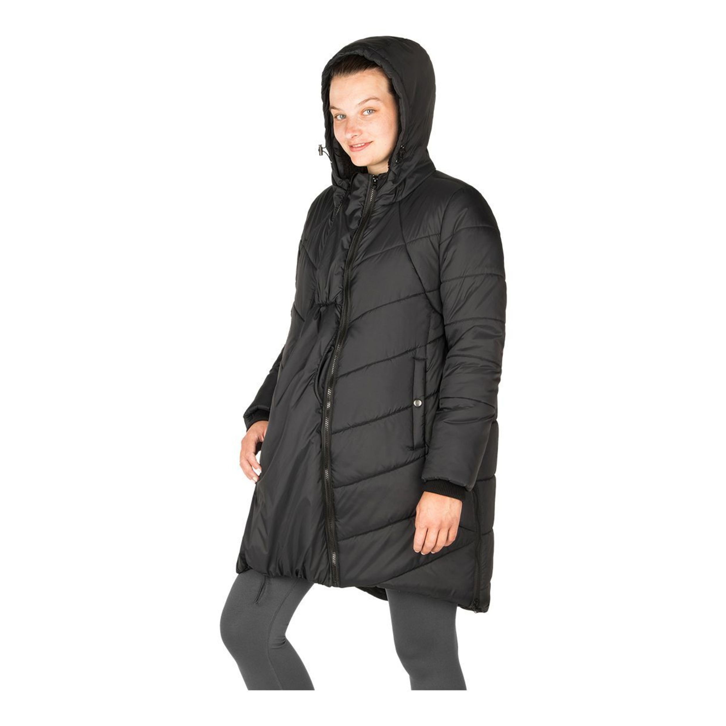 The Modern Eternity Women's Harper Maternity Jacket is stylish and comfortable for expectant mothers. This mid-length puffer jacket features a 3-in-1 removable panel technology to adapt to your body throughout pregnancy. The kangaroo pockets and rib knit insert on the panel offer convenience. With a quilted polyester, this maternity jacket is durable and built to last. Online Only.