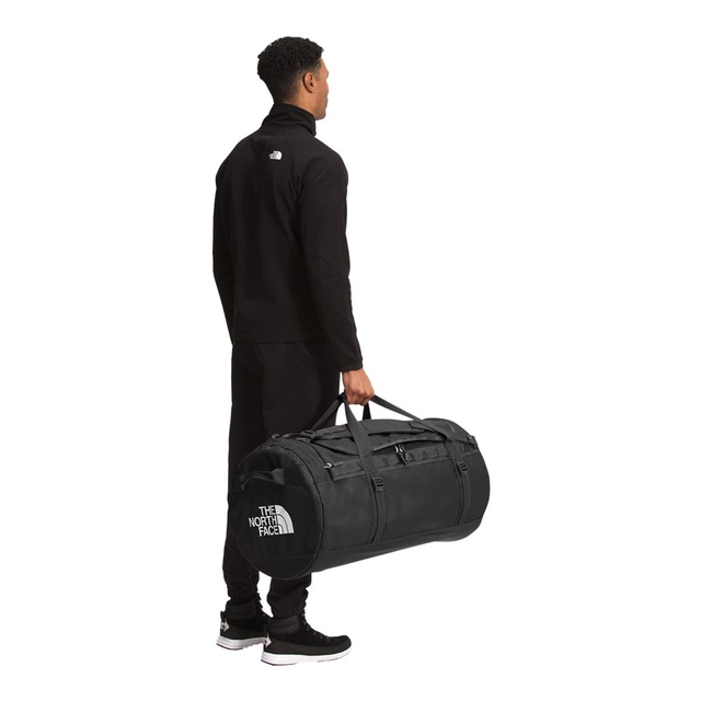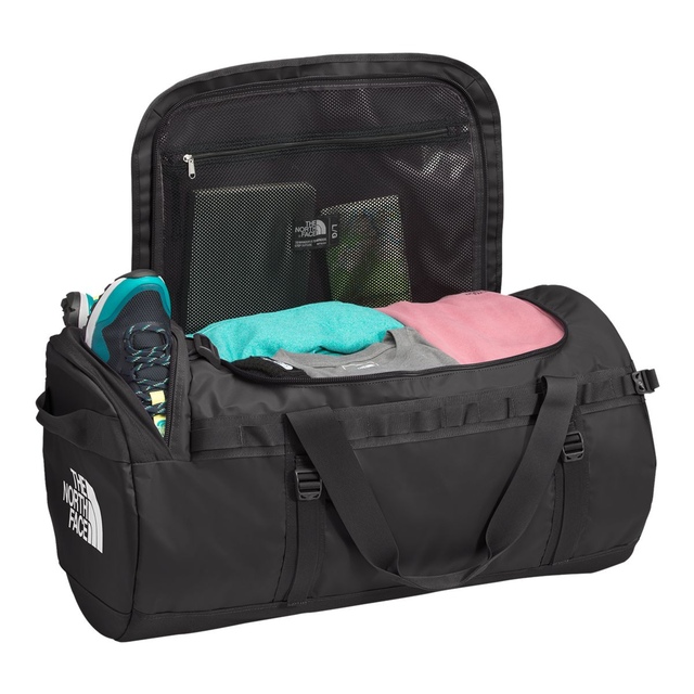 The North Face Base Camp 95L Duffle Bag is designed for durability with water-resistant material, extra bartacks and double stitching. Features include a secure-zip mesh pocket, end-cap sleeve, compression straps, detachable shoulder straps, padded side handles and a weather-resistant D-zip opening. The North Face duffle is Ideal for organized, versatile travel.