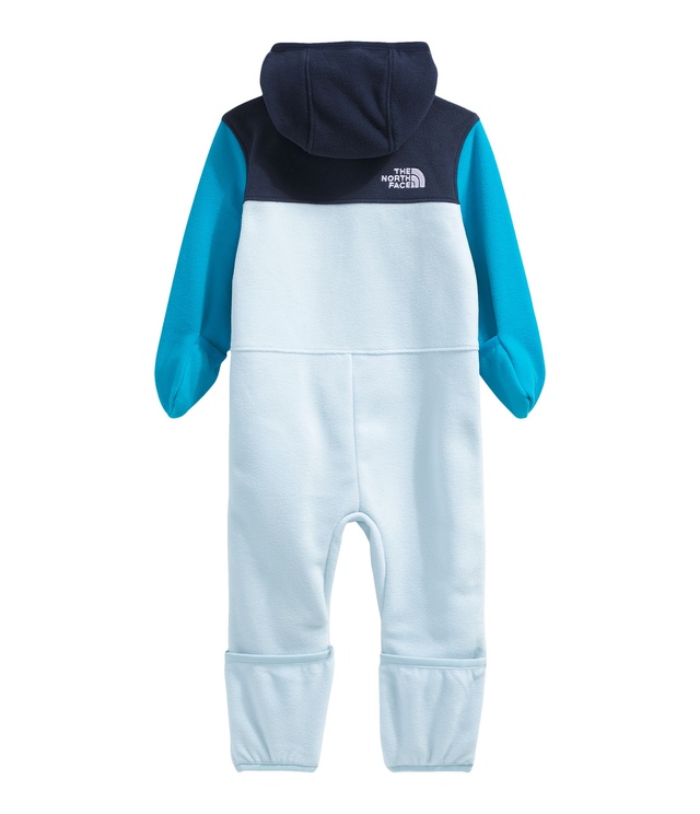 The North Face Infant Kids' Glacier One Piece Fleece Set keeps your little one warm and cozy. It features a three-piece hood, fold-over mittens, and booties for added warmth. Made from recycled polyester fleece, it offers a snug fit with elastic binding and an easy asymmetrical zipper.