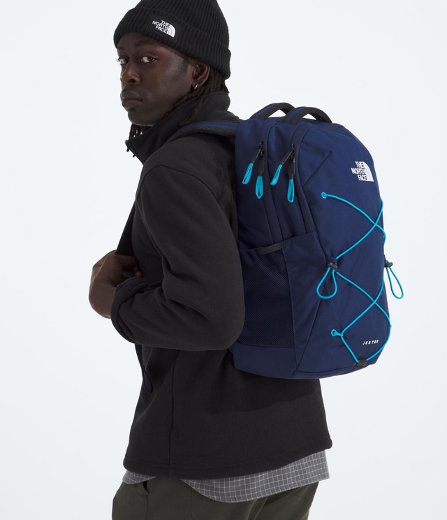 The North Face Jester 27L Backpack offers ergonomic comfort with the FlexVent™ suspension system. It has a padded laptop sleeve, organized compartments, and external storage options. Other features include external water bottle pockets, a front bungee system for extra storage, and webbing top handles that offer a balanced, swing-free carry. With reflective elements and a balanced design, this Jester backpack suits various daily activities.