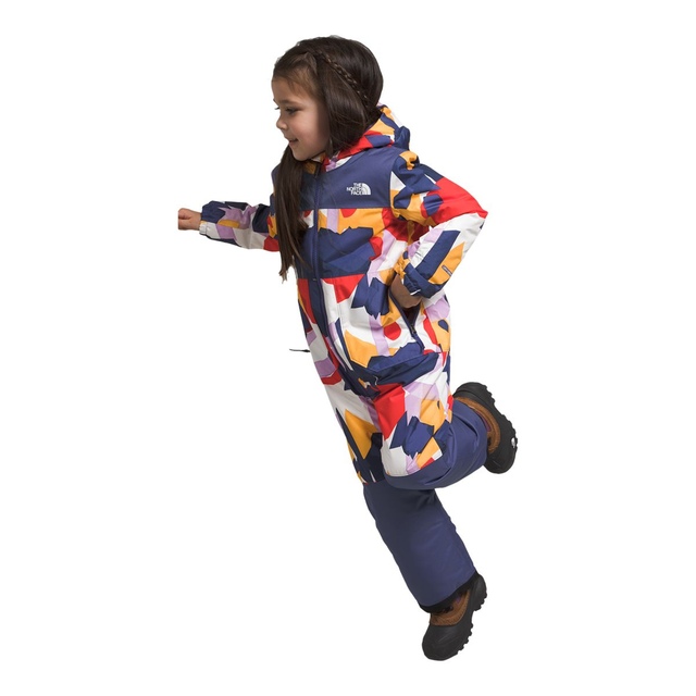 The North Face Kids' Freedom Snow Suit gives kids the freedom to explore the snowy weather in comfort. It features a breathable DryVent™ 2L shell with a durable non-PFC DWR waterproof finish. It’s crafted from recycled polyester for sustainability and equipped with secure-zip pockets for hands-free storage. Ankle gaiters and a chin guard enhance comfort and protection for extended wear and this snow suit from The North Face features an EZ Grow™ system at the hem for an adaptable fit.