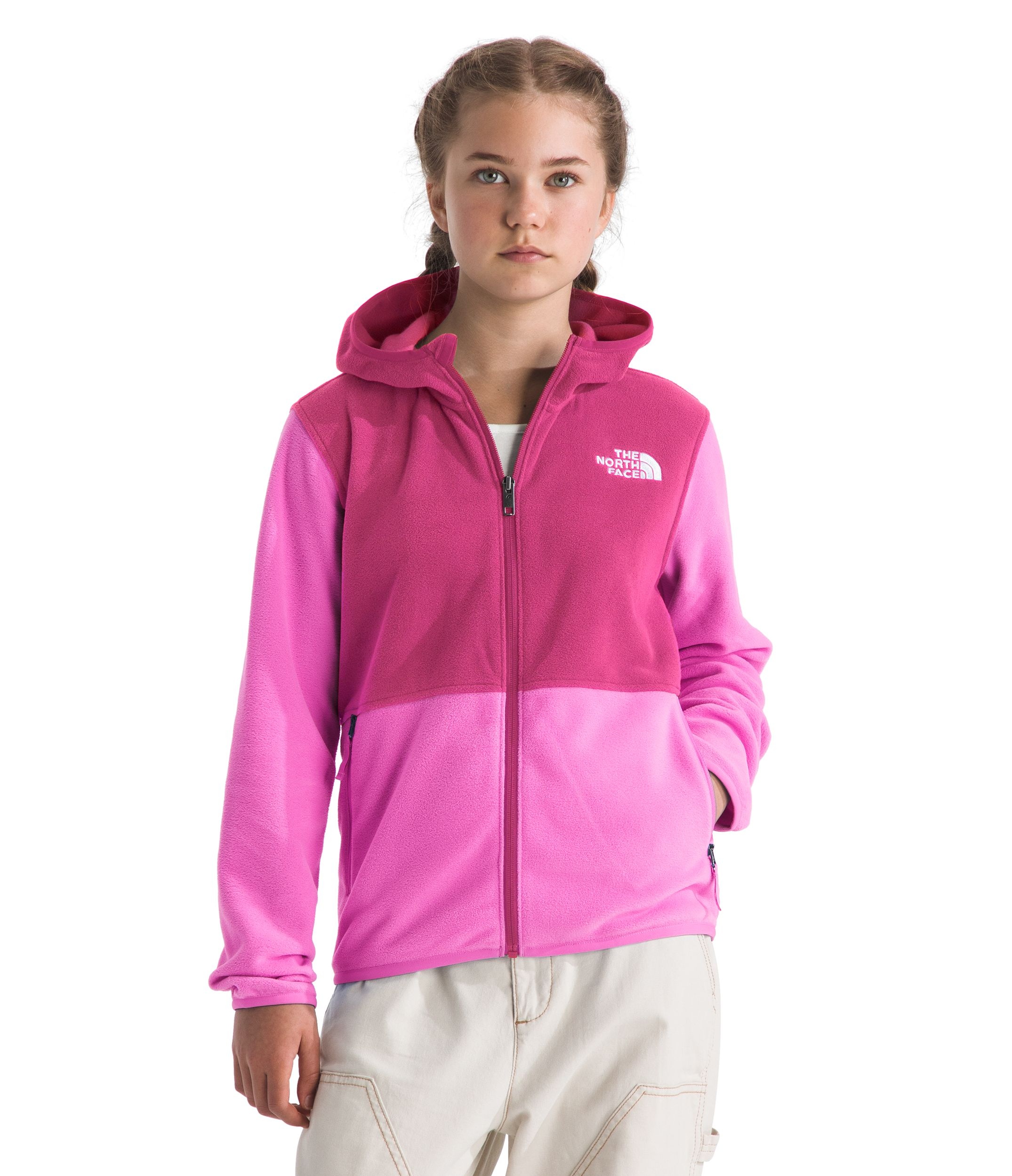 The North Face Kids' Glacier Full Zip Hoodie is perfect for young adventurers. This soft, recycled fleece layer is designed to keep them comfortable from the playground to the campground. With its durable construction and cozy feel, it's an essential addition to their outdoor wardrobe.