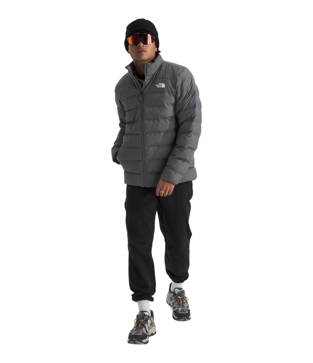 The North Face Men's Aconcagua 3 Jacket easily transitions from early-morning hikes to city streets with a mix of recycled down and synthetic insulation to keep you warm. The down jacket has a water-repellent finish that helps keep you dry against the elements, making it a flexible midweight option.