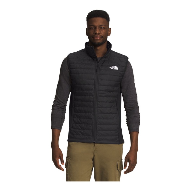 The North Face Men's Canyonlands Hybrid Vest is an insulated, slim-fit layer designed with Heatseeker™ Eco insulation for added warmth. Stretchable side panels provide flexibility, while the recycled polyester fabric adds an eco-friendly touch. This vest also has a non-PFC DWR finish for water resistance, making it a practical choice for outdoor wear.