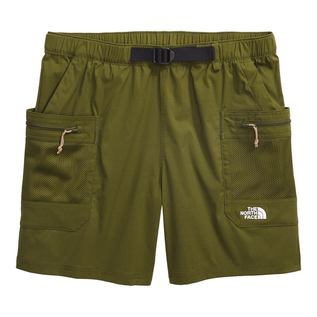 The North Face Men's Class V Belted Shorts are designed to fit your active lifestyle. They feature a relaxed fit that gives you room to move and FlashDry™ materials for superior moisture management. A non-PFC DWR finish provides durable water repellency, and strong ripstop fabric made with 59% recycled nylon enhances sustainability. These shorts from The North Face come with an adjustable webbing belt for custom comfort and are equipped with convenient hand pockets for on-the-go storage.