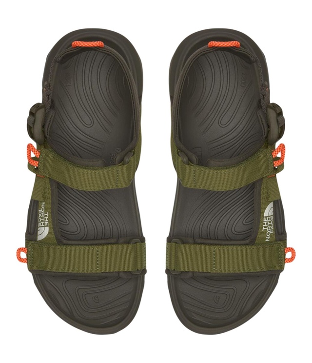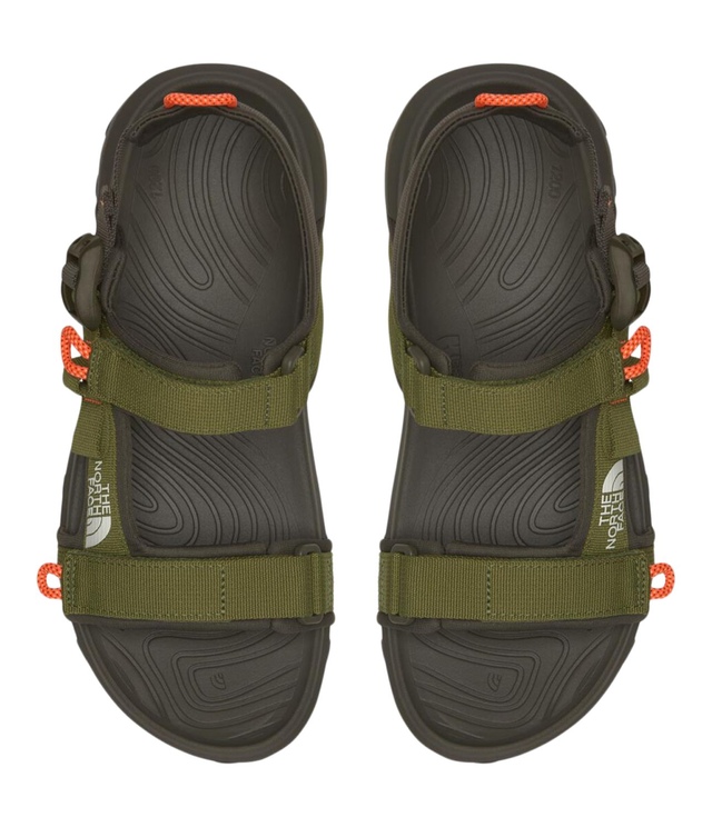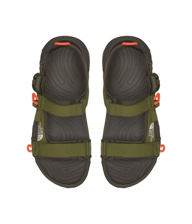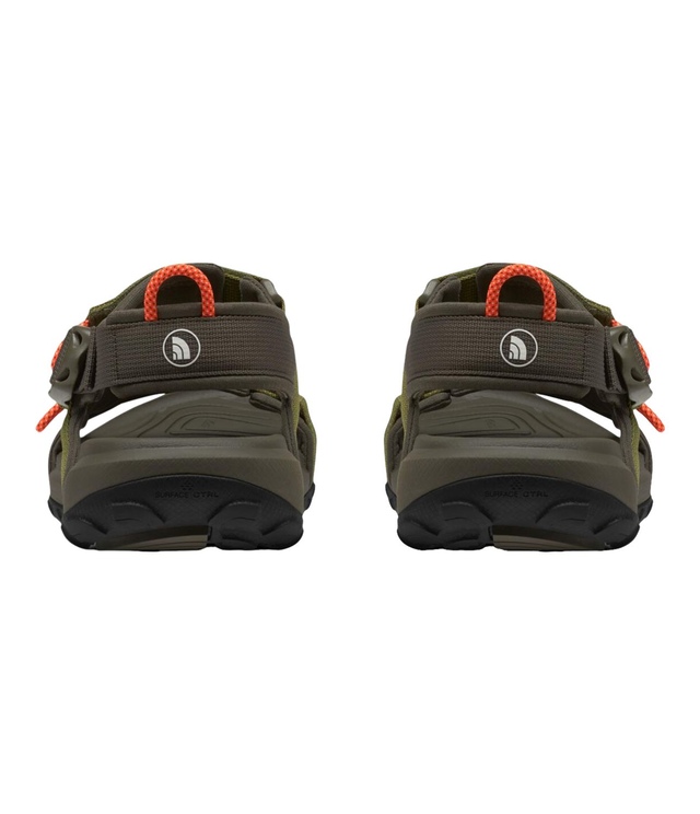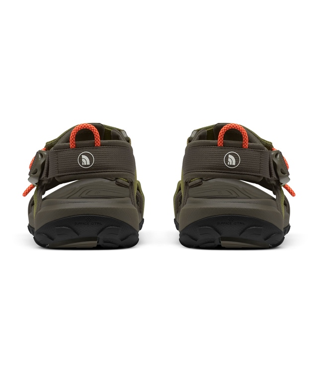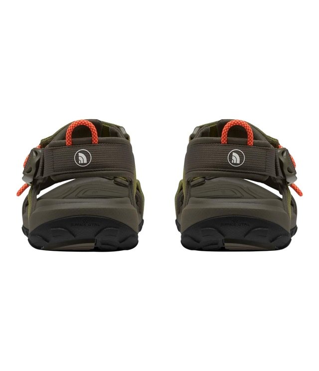 The North Face Men's Explore Camp Sandals feature an upper made with up to 97% recycled PET for environmental sustainability. Multiple adjustment points include hook-and-loop straps at the instep and forefoot, plus a heel slider buckle. The SURFACE CTRL™ rubber outsole with 3.5mm lugs, incorporating 10% rubber from regenerative farms, delivers a versatile hiking sandal to handle rough terrains.